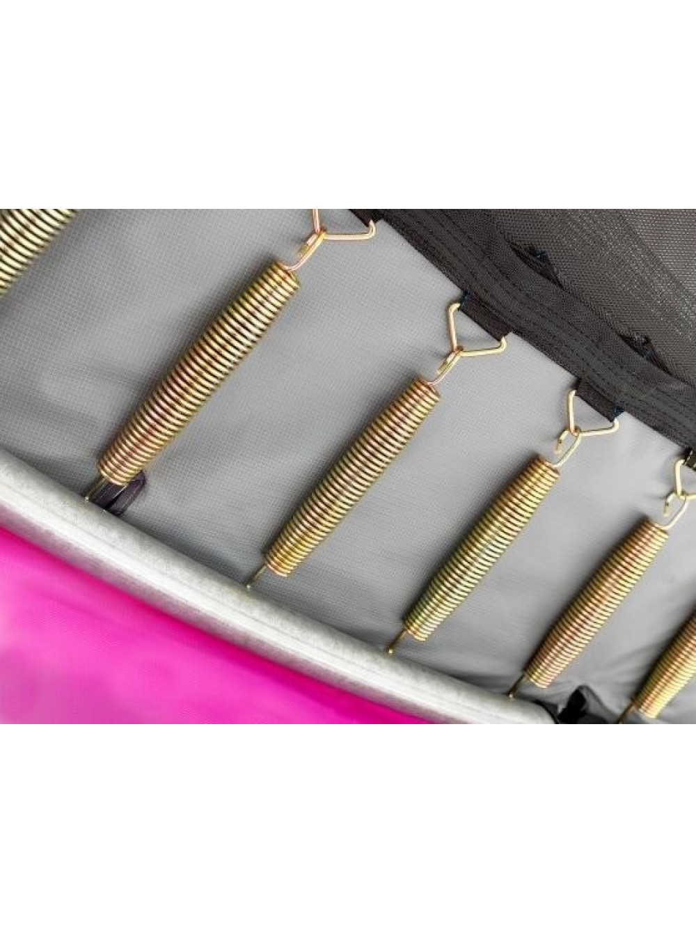 Рама спочатку оцинковується, а потім покривається фарбою порошковим методом, що не залишає ні єдиного шансу для іржі. Подовжені пружини 21.6 см двоконусної форми, що гарантує відмінний відскік і м'яке приземлення.