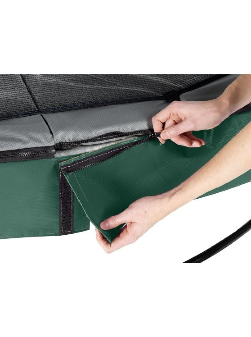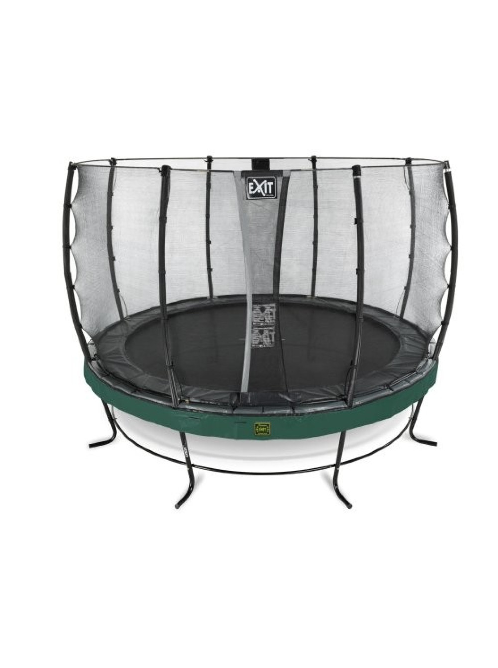 Батут EXIT Elegant Premium 427cm green із захисною сіткою стандарт з чудовою ошатною спідничкою зеленого кольору - море радості, позитиву і відмінного настрою у вашому будинку або саду.