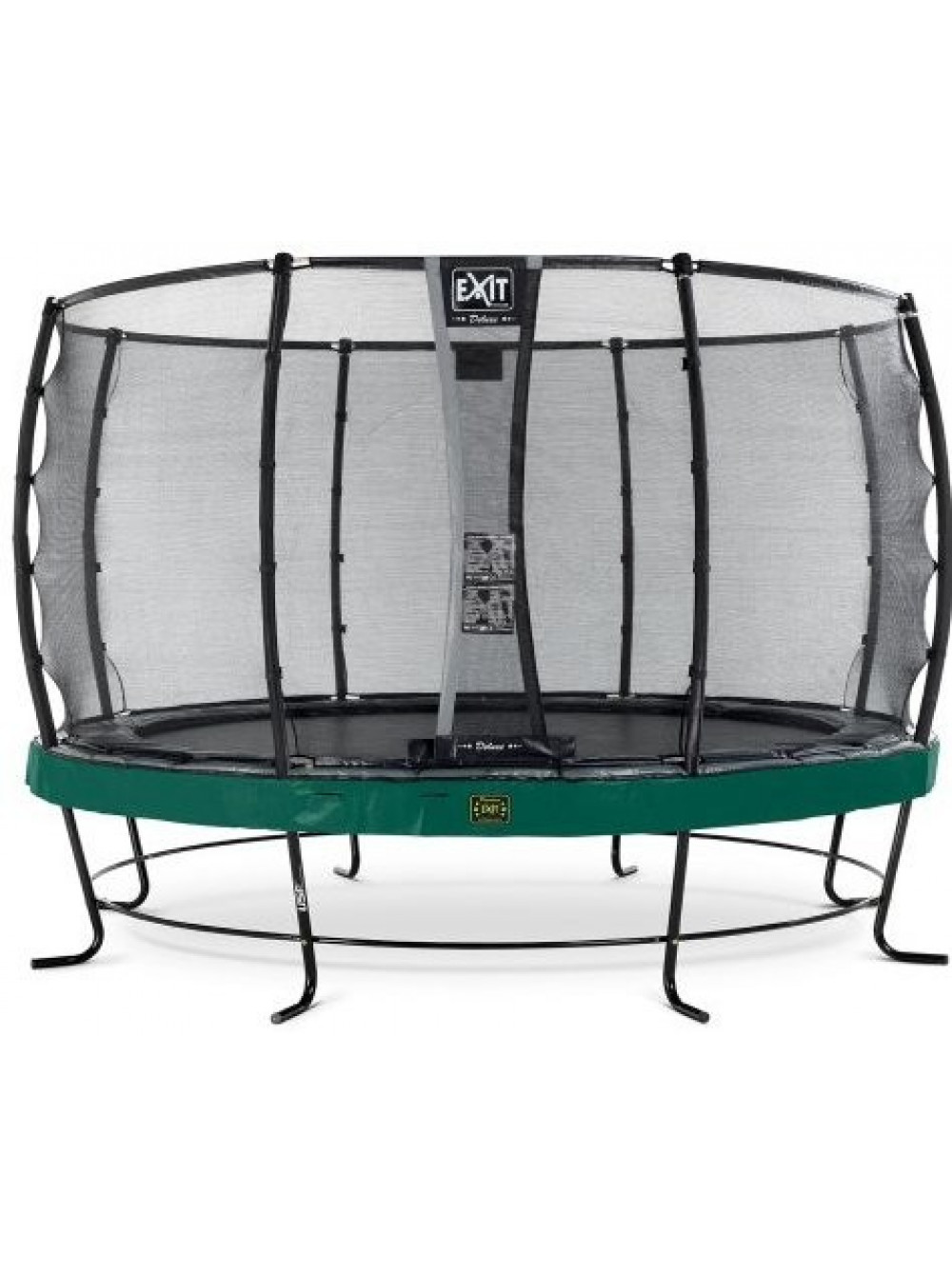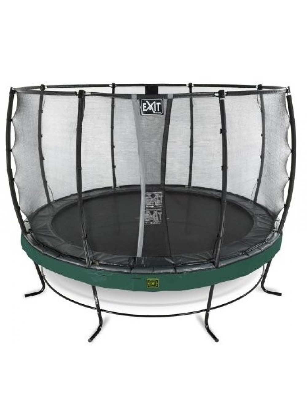 Батут EXIT Елегант Преміум 427см зелений з сіткою безпеки Deluxe - це високоякісний круглий батут, продукт найвищого класу, кращий з серії батутів Elegant із захистом на пружинах сірого кольору і зеленою спідницею. Він безпечний, красивий, дуже зручний, має супер міцну раму і легко збирається.