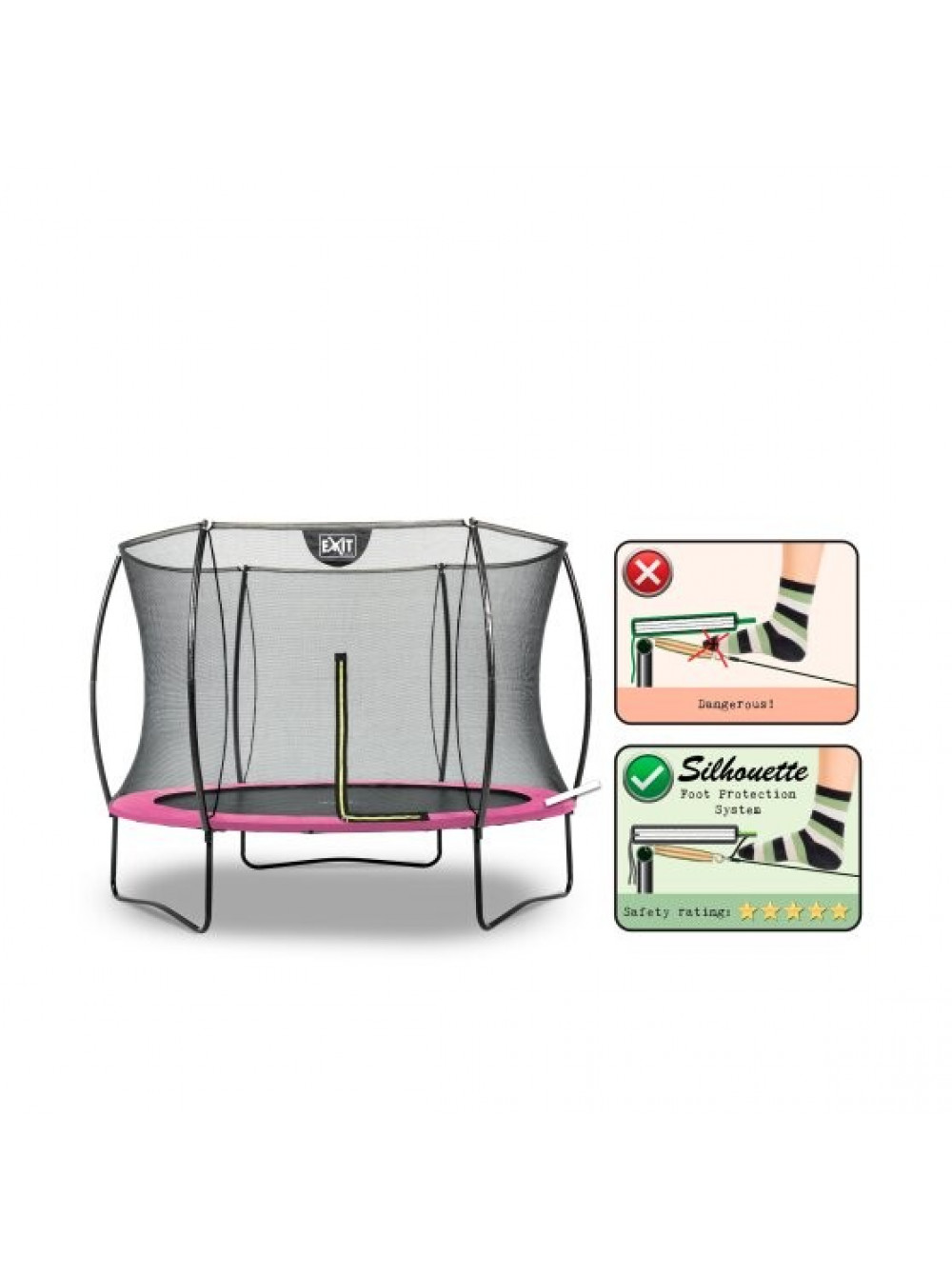 Батут EXIT Silhouette 244 см рожевий - це круглий батут середнього розміру з накладкою на пружинах рожевого кольору. В комплекті захисна сітка і каркасна рама на ніжках.