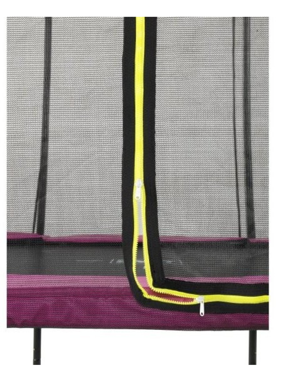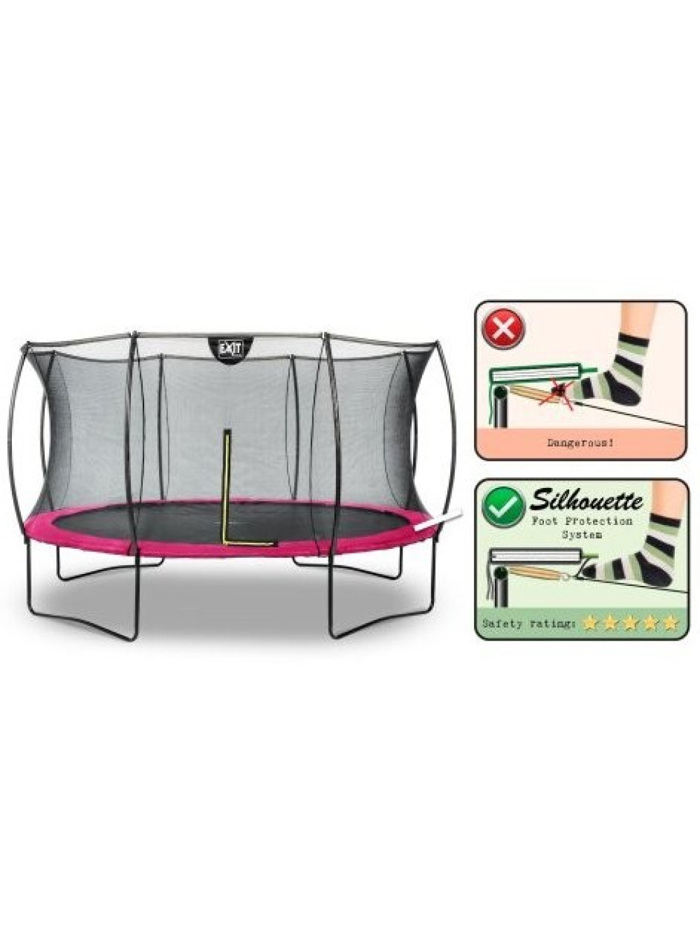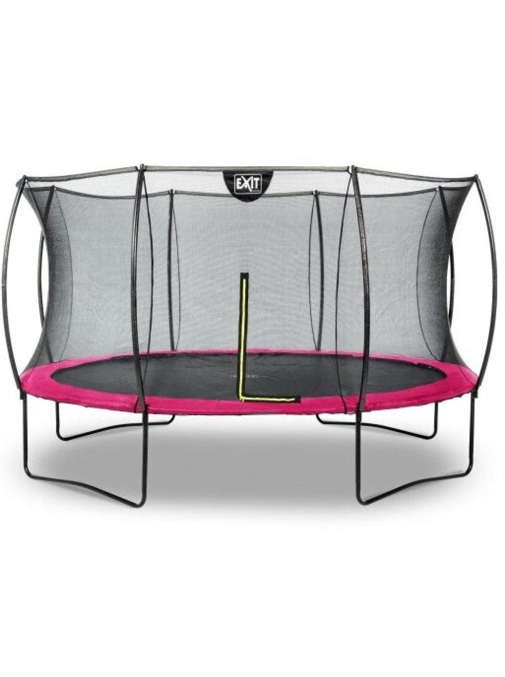 Батут Exit Silhouette 366 рожевий - красивий, безпечний, довговічний, сучасний і прекрасно розроблений. Без сумнівів, буде чудово виглядати в будь-якому саду або дворі будинку. Конструкція досить стійка і поставляється в комплекті з захисною сіткою, яка оснащена яскравою флуоресцентною зеленою блискавкою, щоб ви могли відразу побачити, чи правильно вона закрита. Батут має контрастний чорний матовий колір з включеннями яскраво-зелених акцентів, що робить його елегантним і привабливим.