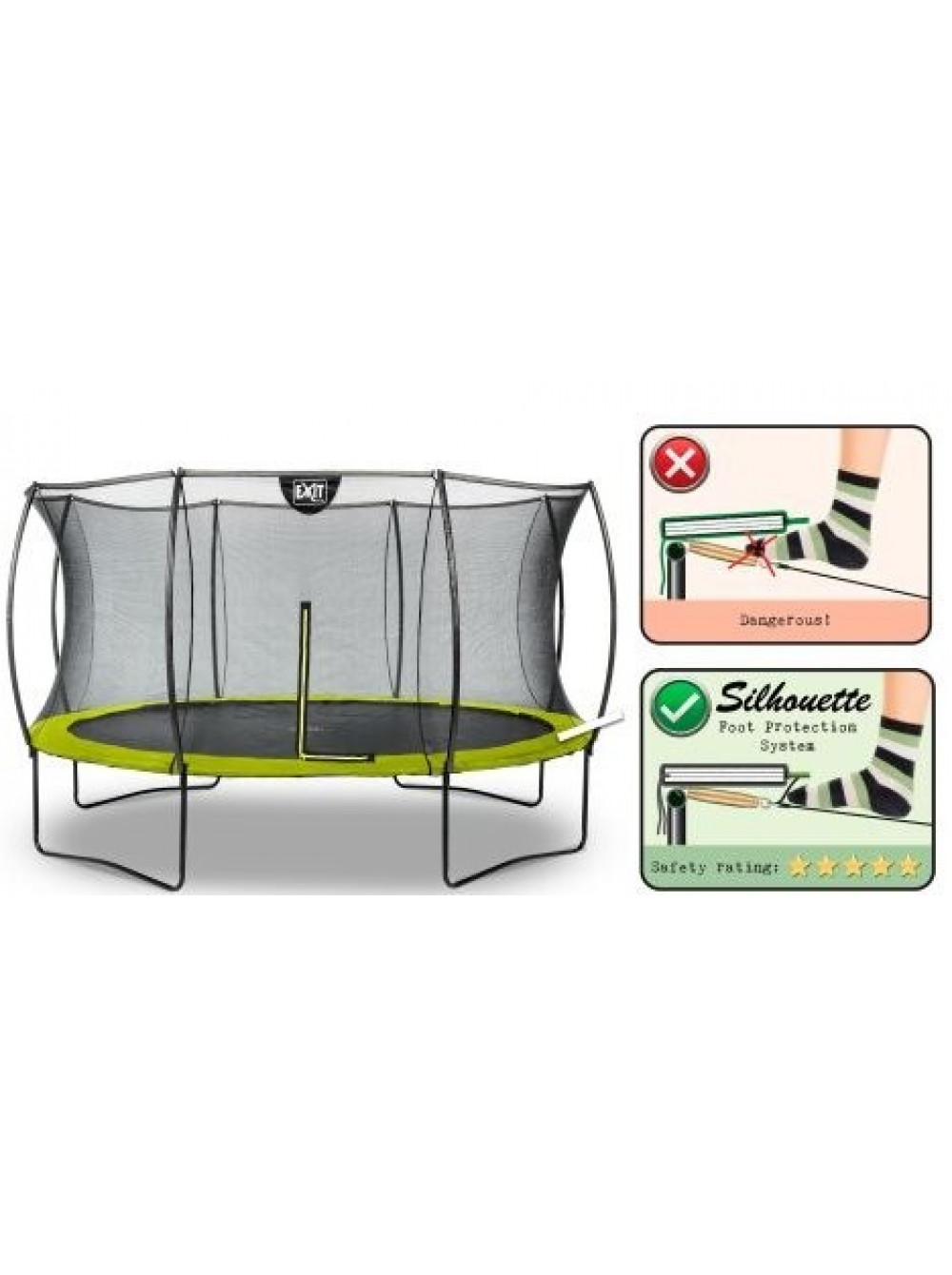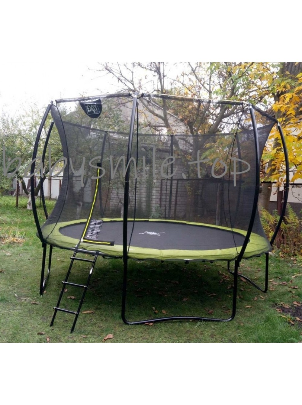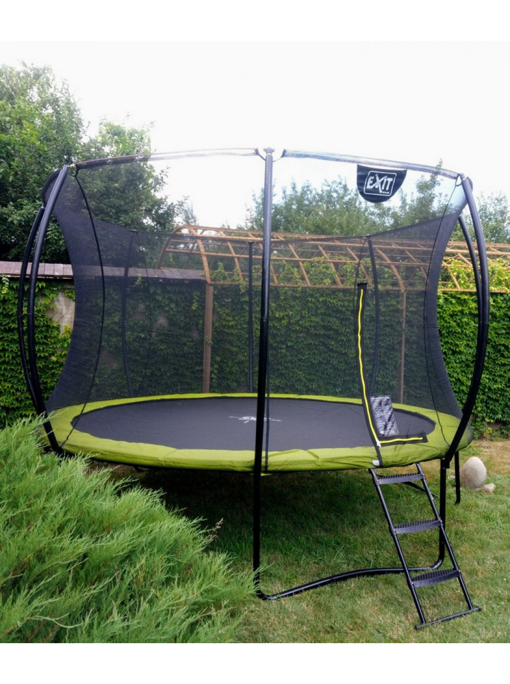 Батут Exit Silhouette 366 зелений - красивий, безпечний, довговічний, сучасний і прекрасно розроблений. Без сумнівів, буде чудово виглядати в будь-якому саду або дворі будинку. Конструкція досить стійка і поставляється в комплекті з захисною сіткою, яка оснащена яскравою флуоресцентною зеленою блискавкою, щоб ви могли відразу побачити, чи правильно вона закрита. Батут має контрастний чорний матовий колір з включеннями яскраво-зелених акцентів, що робить його елегантним і привабливим.