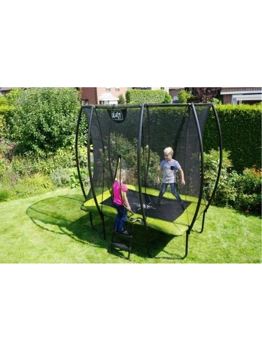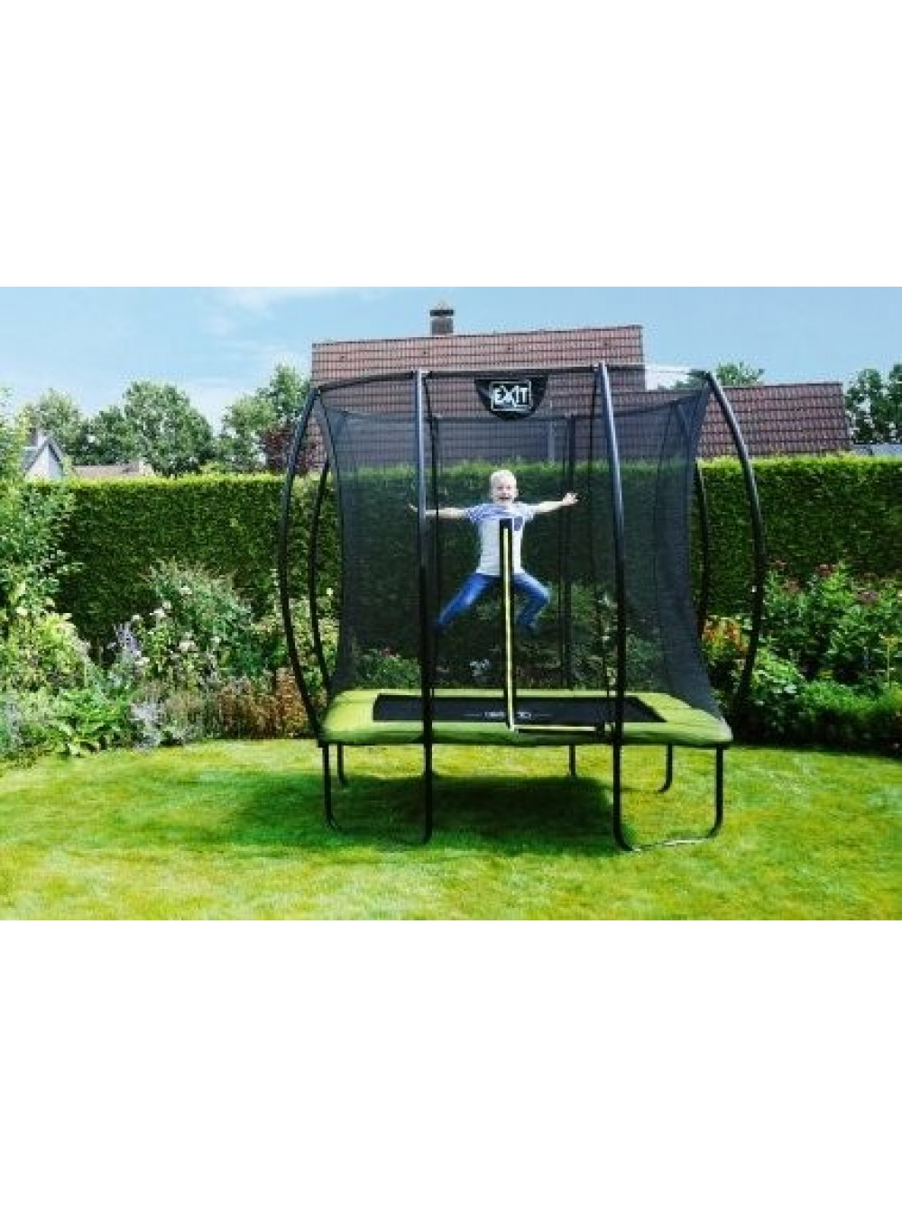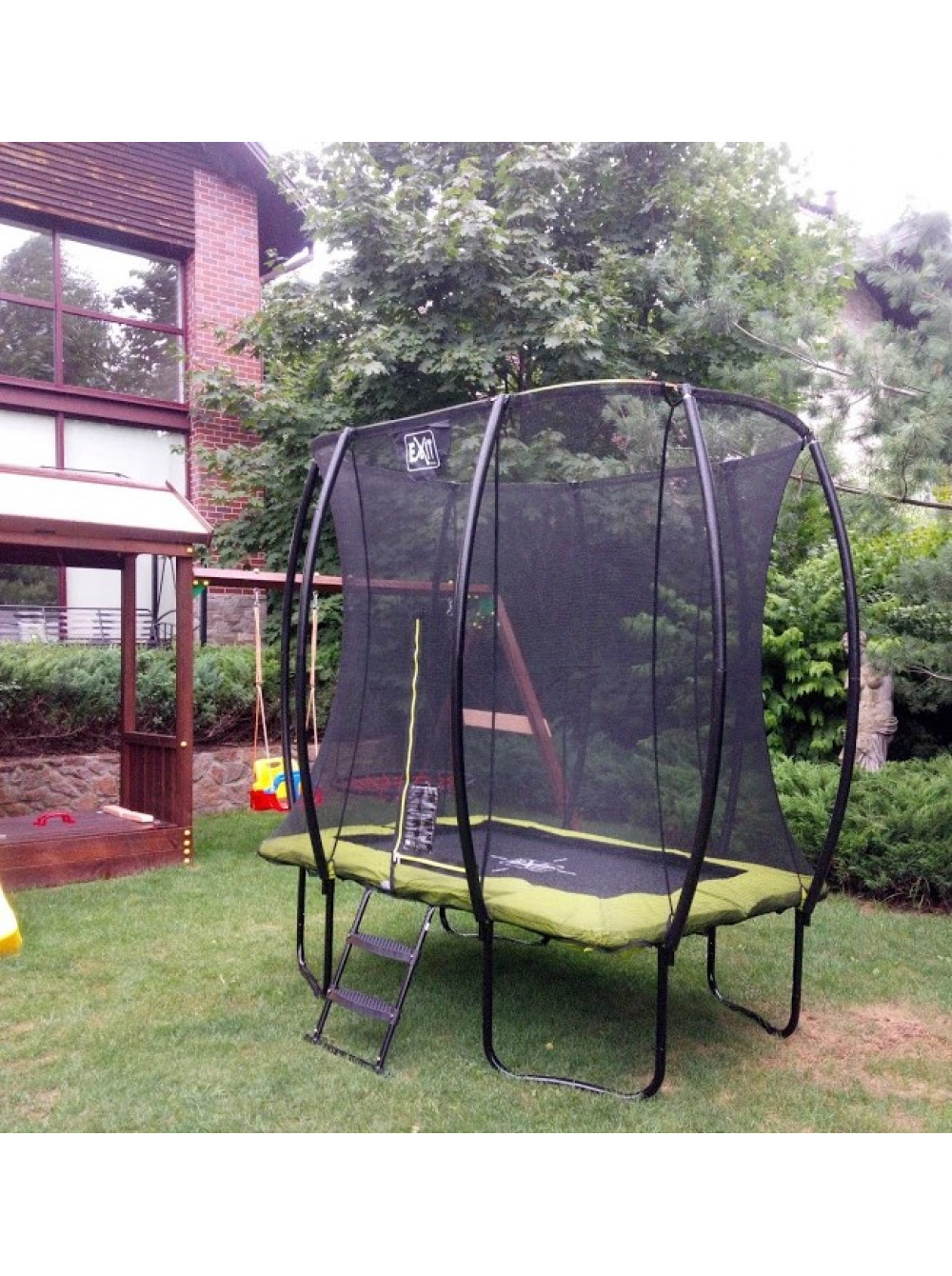 Батут EXIT Silhouette прямокутний 153x214 зелений. Це компактний прямокутний батут, безпечний, довговічний, сучасний і прекрасно розроблений, його можна розмістити як на вулиці, так і у будинку або квартирі. Конструкція досить стійка і поставляється в комплекті із захисною сіткою, яка зручно відкривається за допомогою флуоресцентної блискавки зеленого кольору, так що Ви відразу зможете побачити чи закрита блискавка належним чином.