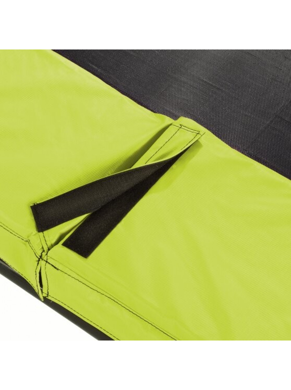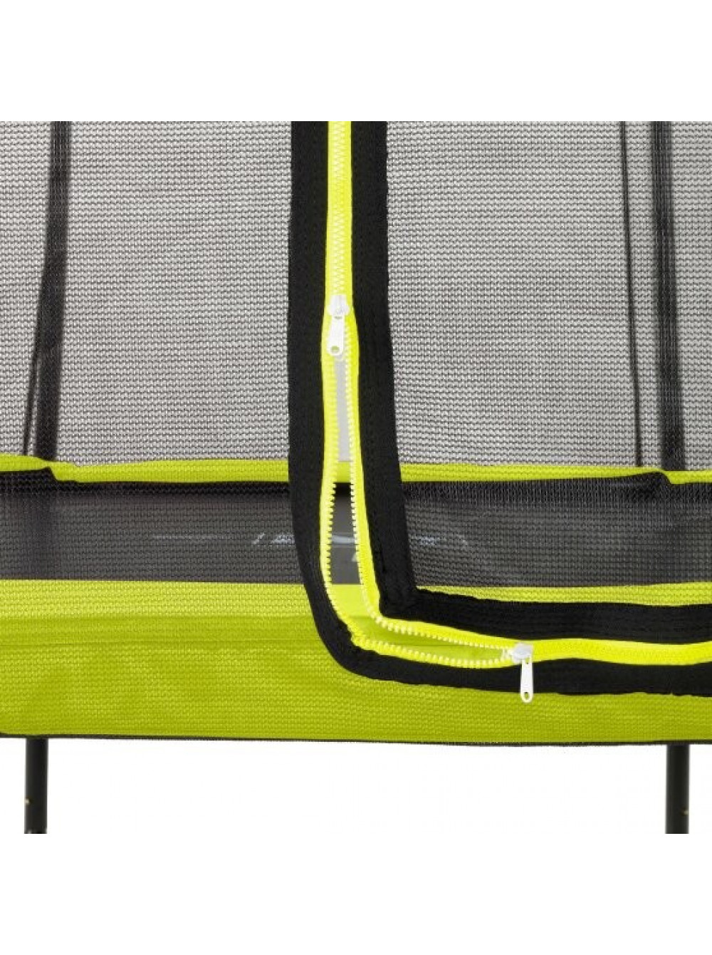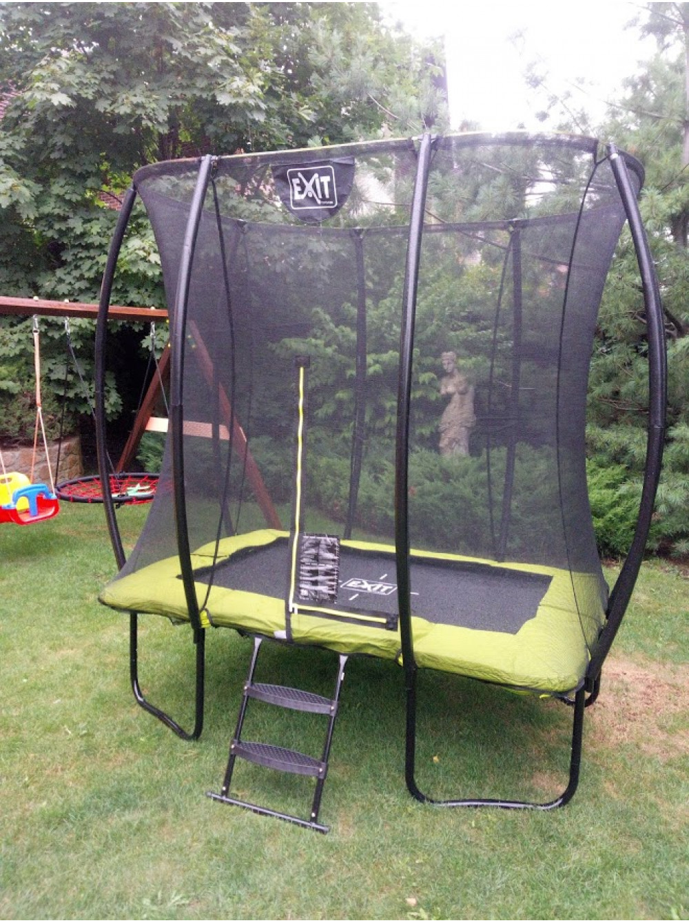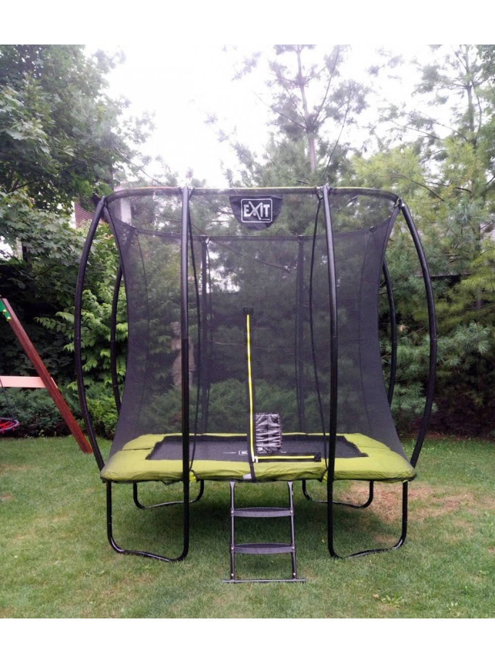 Батут EXIT Silhouette прямокутний 153x214 зелений. Це компактний прямокутний батут, безпечний, довговічний, сучасний і прекрасно розроблений, його можна розмістити як на вулиці, так і у будинку або квартирі. Конструкція досить стійка і поставляється в комплекті із захисною сіткою, яка зручно відкривається за допомогою флуоресцентної блискавки зеленого кольору, так що Ви відразу зможете побачити чи закрита блискавка належним чином.