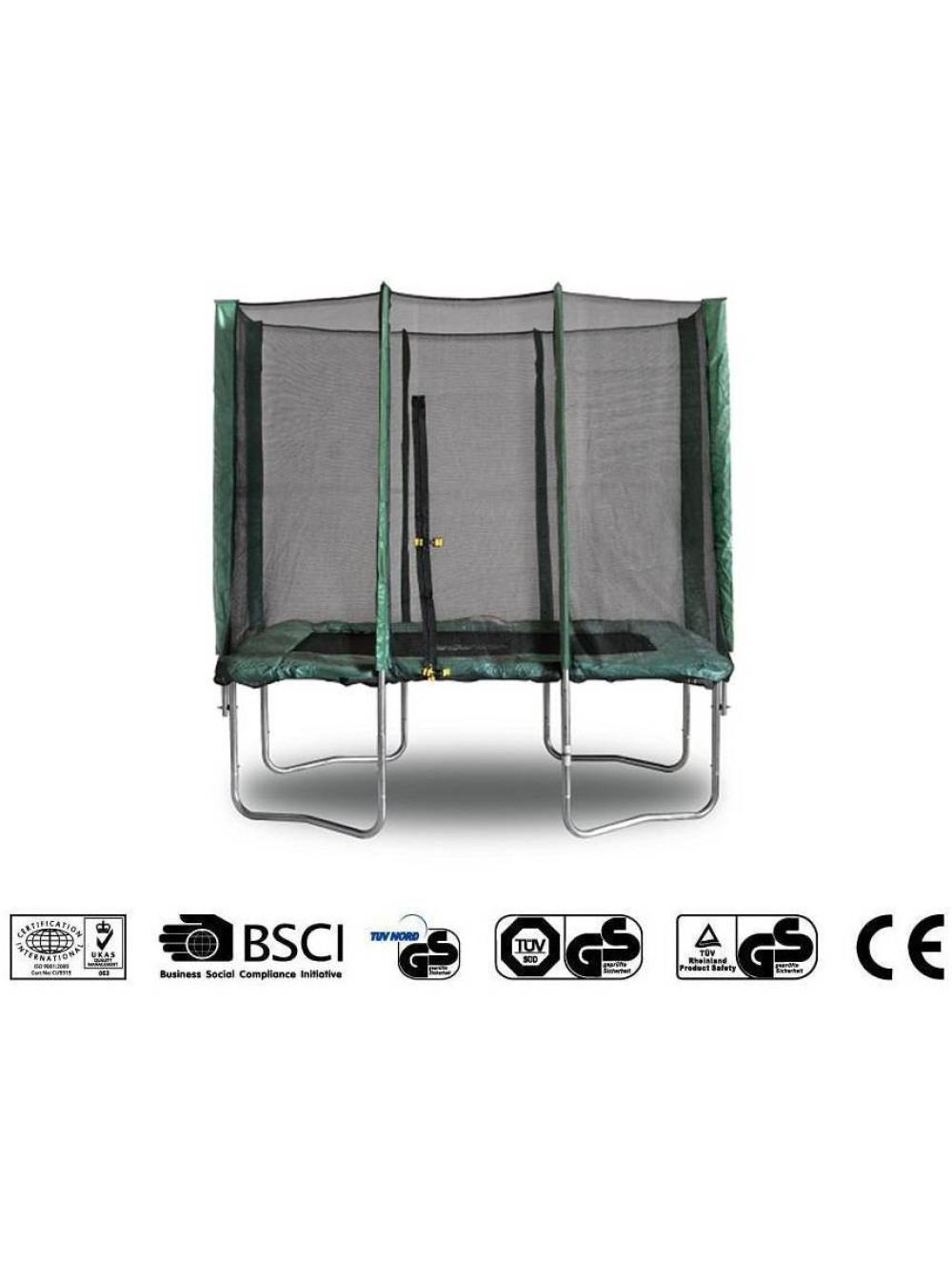 Батут прямокутний 215 * 150 см добре зарекомендував себе не тільки в домашньому приватному використанні, але і в комерційному. Для безпечного користування та для уникнення можливих травм поставляється в комплекті із захисною сіткою. Пружини, за допомогою яких мат батута кріпитися до стійок, закриті м'яким захистом з водостійкої тканини. Двом-трьом дітям на такому прямокутному батуті буде комфортно і весело, хоча за правилами безпеки займатися може тільки одна людина. Дотримуйтесь інструкції по експлуатації і ця річ прослужить Вам кілька років.