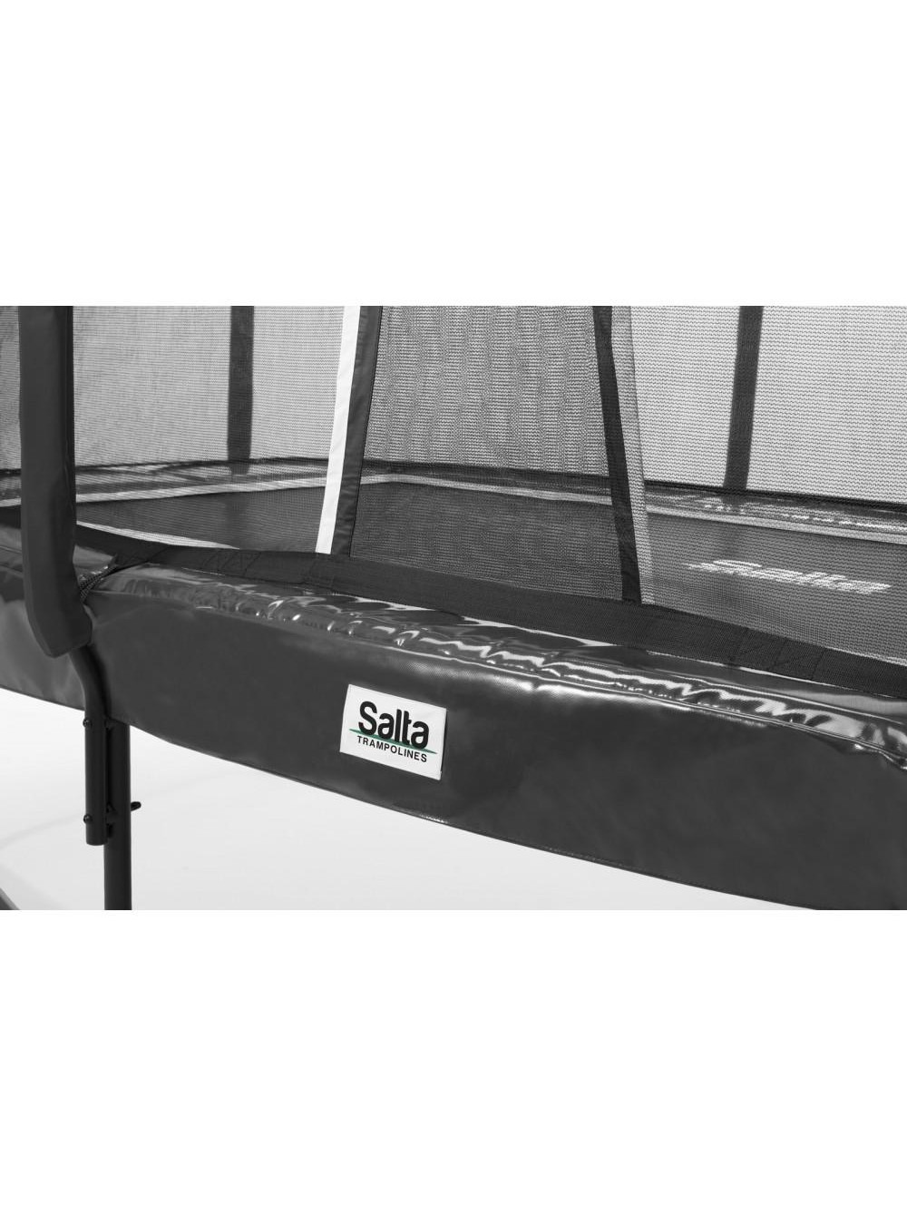 Батут із сіткою Salta First Class Чорний 366x214 см - продукт європейського бренду Salta, розроблений відповідно до останніх тенденцій європейських норм безпеки. При виробництві цієї серії батутів використовуються тільки найкращі та якісні матеріали.