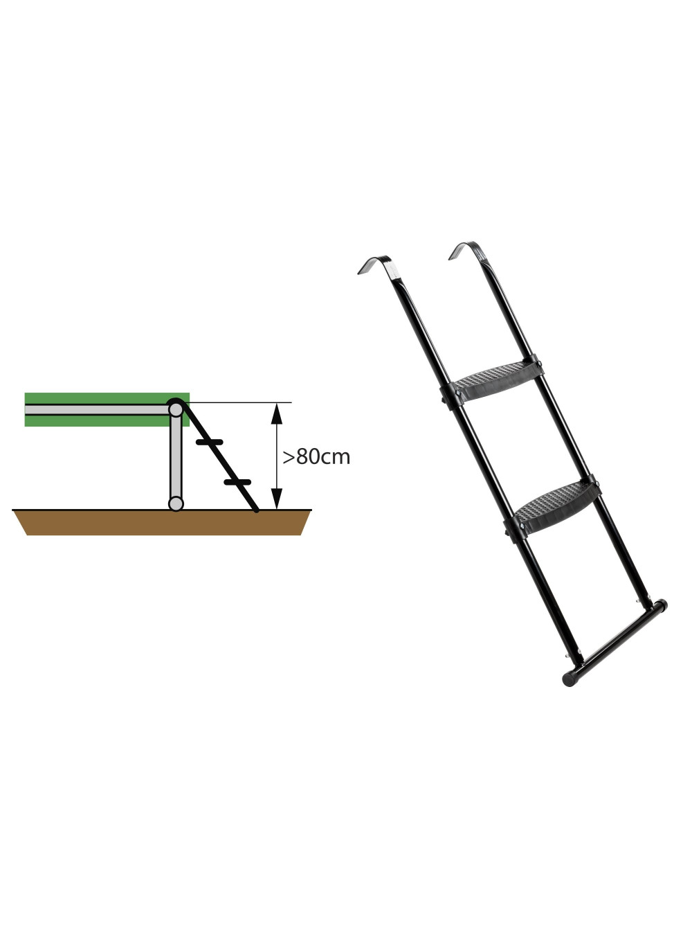 Сходи EXIT (висота рами 80 см) - обов'язкове доповнення до всіх батутів Екзіт з висотою рами 80 см і вище. Це доповнення зробить користування цим тренажером комфортніше і безпечніше. Адже підійматися на таку висоту набагато зручніше за такою драбинкою.