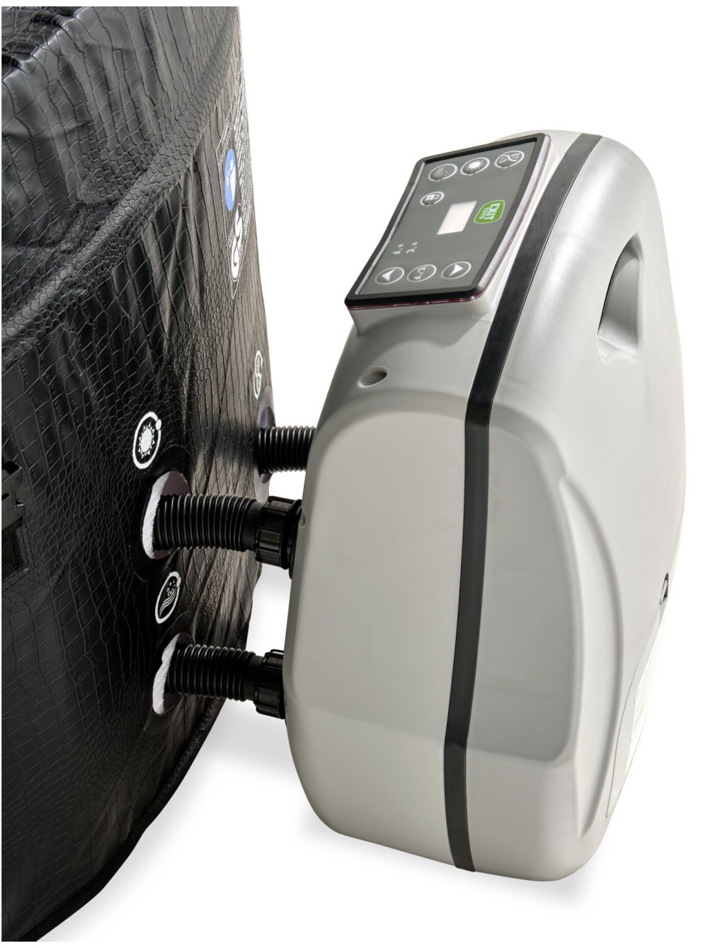 Такий спа басейн стандартно поставляється з фільтруючим насосом, який і нагріває воду, килимком для підлоги і надувною кришкою з ізолюючим накриттям.