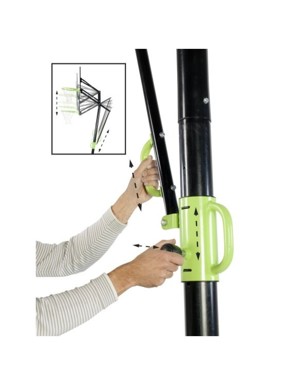 Баскетбольний щит може бути відрегульований на п'ять різних висот: 230 -245 - 260 - 285 - 305 см, тому використати його зможуть як діти, так і дорослі.