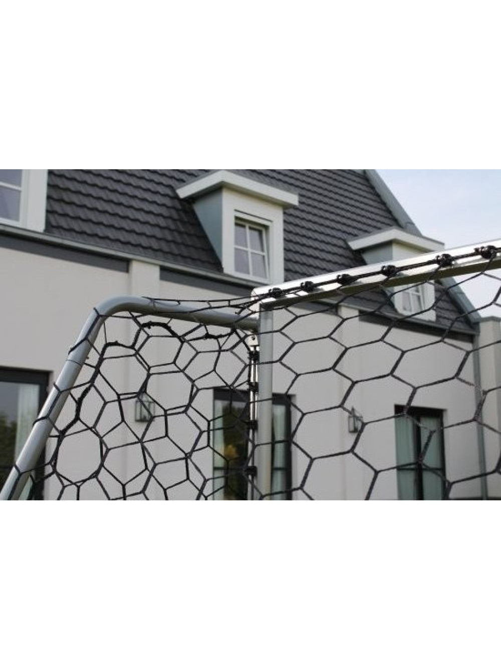 Фронтальна частина каркаса максимально посилена за допомогою застосування анодування (процес створення оксидної плівки на поверхні металів шляхом їх анодної поляризації в середовищі, що проводить). Це означає, що рама отримує додаткове захисне верхнє покриття, що не лише підвищує термін служби, але і робить зовнішній вигляд воріт естетично привабливим. Ідеальну якість гарантує і порошкове покриття тильної частина рами. Міцна сітка EXIT Scala чорного кольору легко кріпиться до рами за допомогою чорних пластикових гачків, встановлених на рамі.