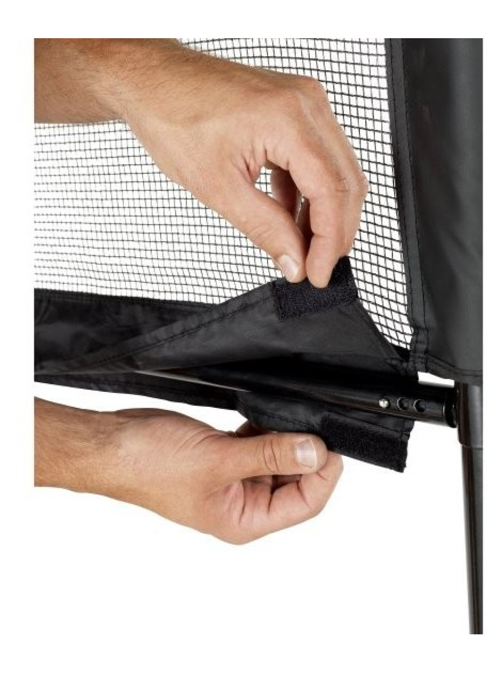 Спортивну сітку можна легко зняти зі стійок і перенести її в інше місце. Система подвійного затягування гарантує, що мережа завжди натягнута туго