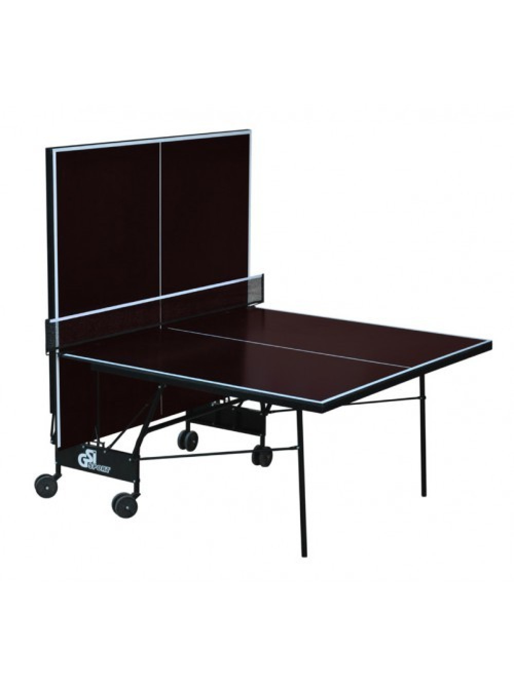 Стіл складається таким чином, що грати на ньому зможе навіть одна людина, опонентом йому при цьому виступає половинка столу піднята вертикально. Ігрова поверхня коричневого кольору базується на 4 ніжках з двома коліщатками і чотирьох стандартних стійких ногах. Завдяки наявності коліс, стіл можна легко переміщати.