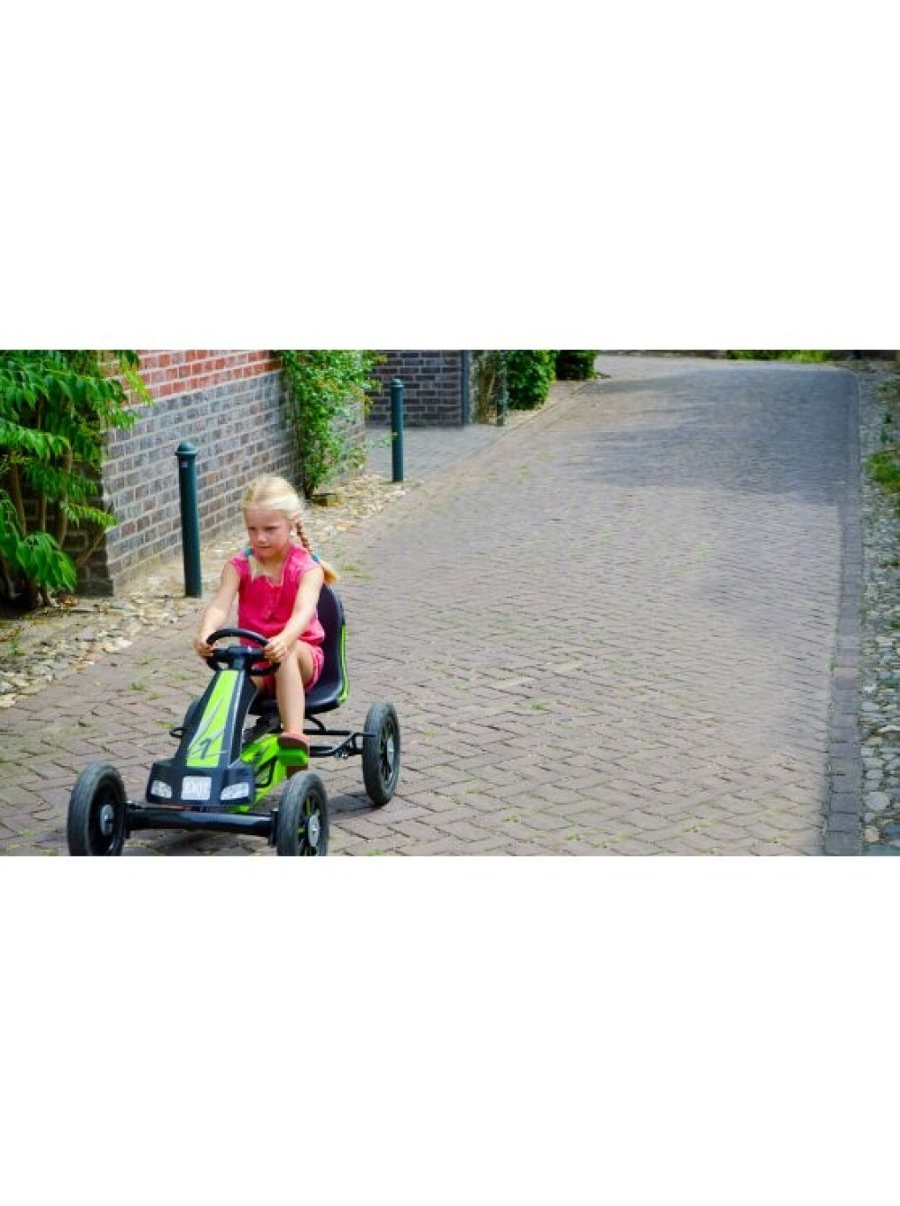 Міцний чорно-зелений каркас, спортивні диски і спойлер надають йому супер крутий, впевнений вигляд. На приладовій панелі можна вмикати і вимикати фари і індикатори. Відповідний аксесуар, такий, як коробка з гоночними звуками, завершує ефектний образ цього карта.