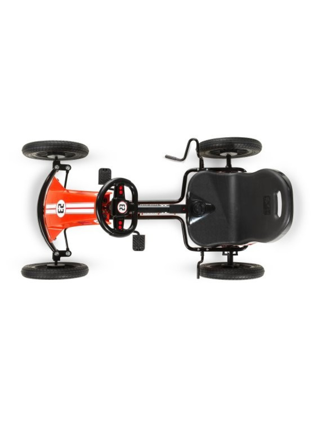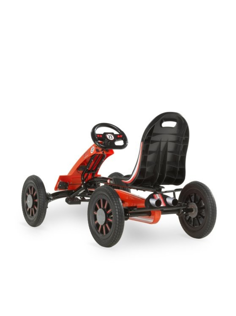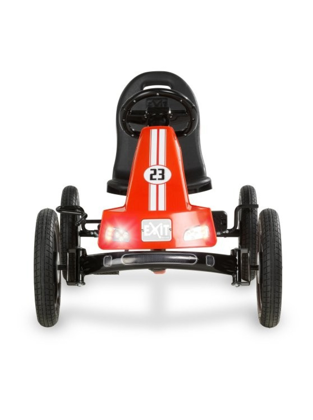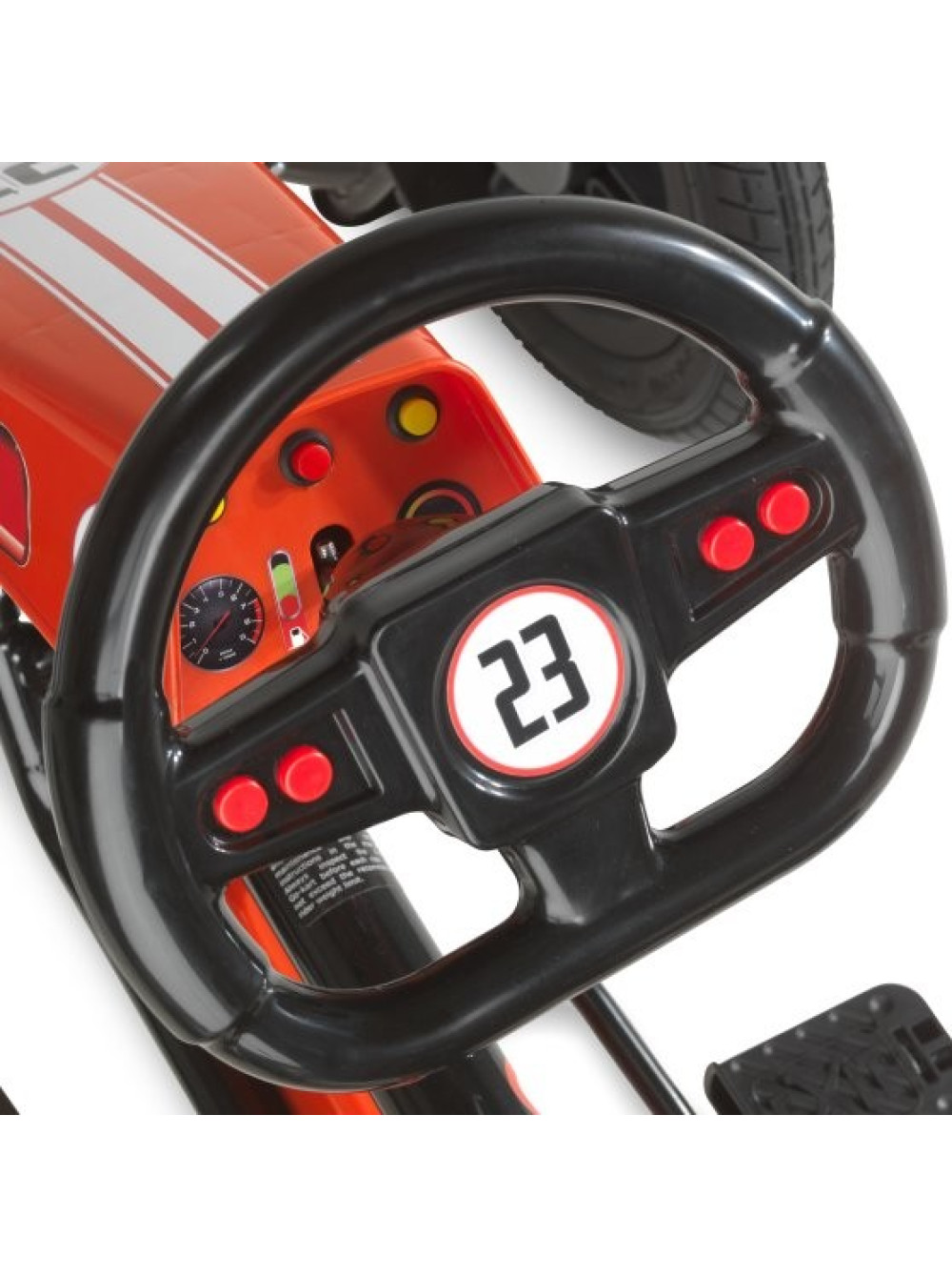 Міцна червона рамка, спортивні форми і спойлер надають картингу стильному вигляду. Фари і поворотники управляються вручну з приладової панелі рульового керма.