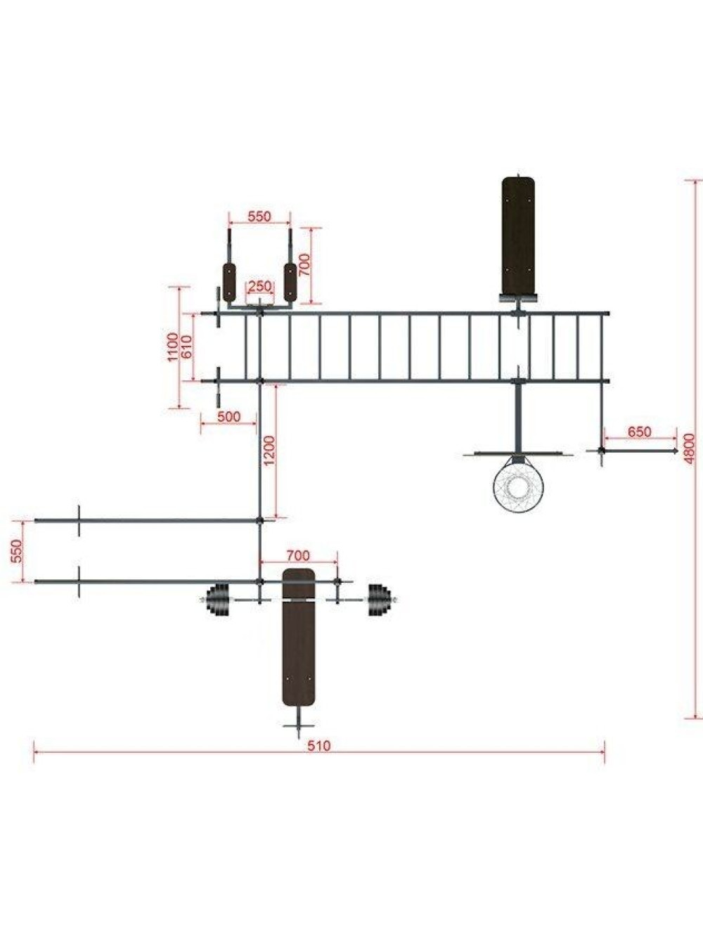 Цей багатофункціональний міні спортивний майданчик розрахований на тренування базових м'язів грудей, рук, спини, пресу.