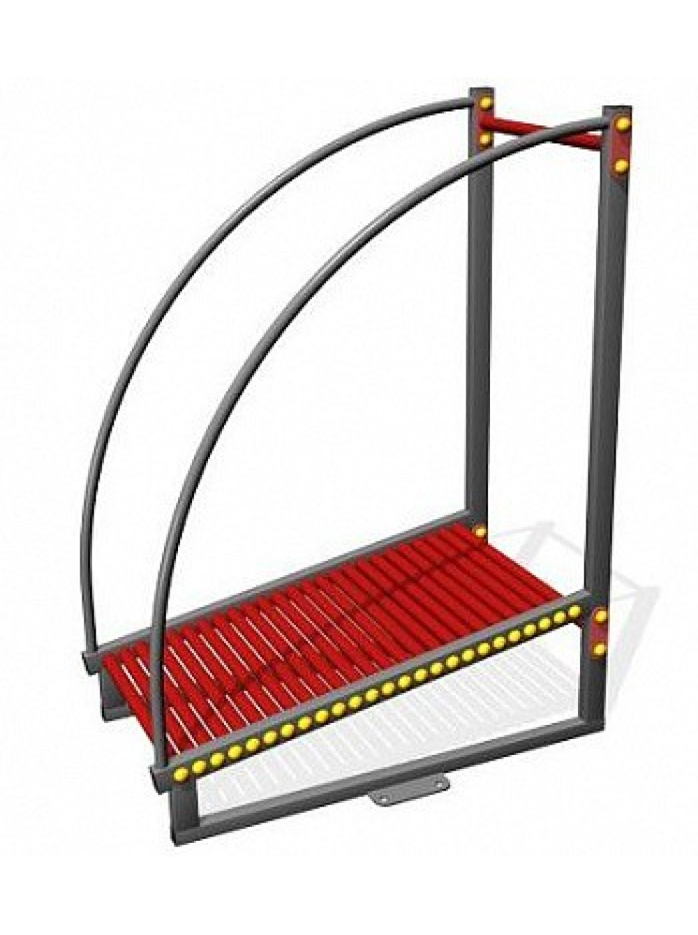 Вуличний тренажер Бігова доріжка - це рама сполучена рухливими, такими, що обертаються навколо осі, трубками. Загальна довжина бігової доріжки 1246 мм. З боків і спереду, доріжка оснащена перилами для утримання того, що займається в процесі пробіжки.