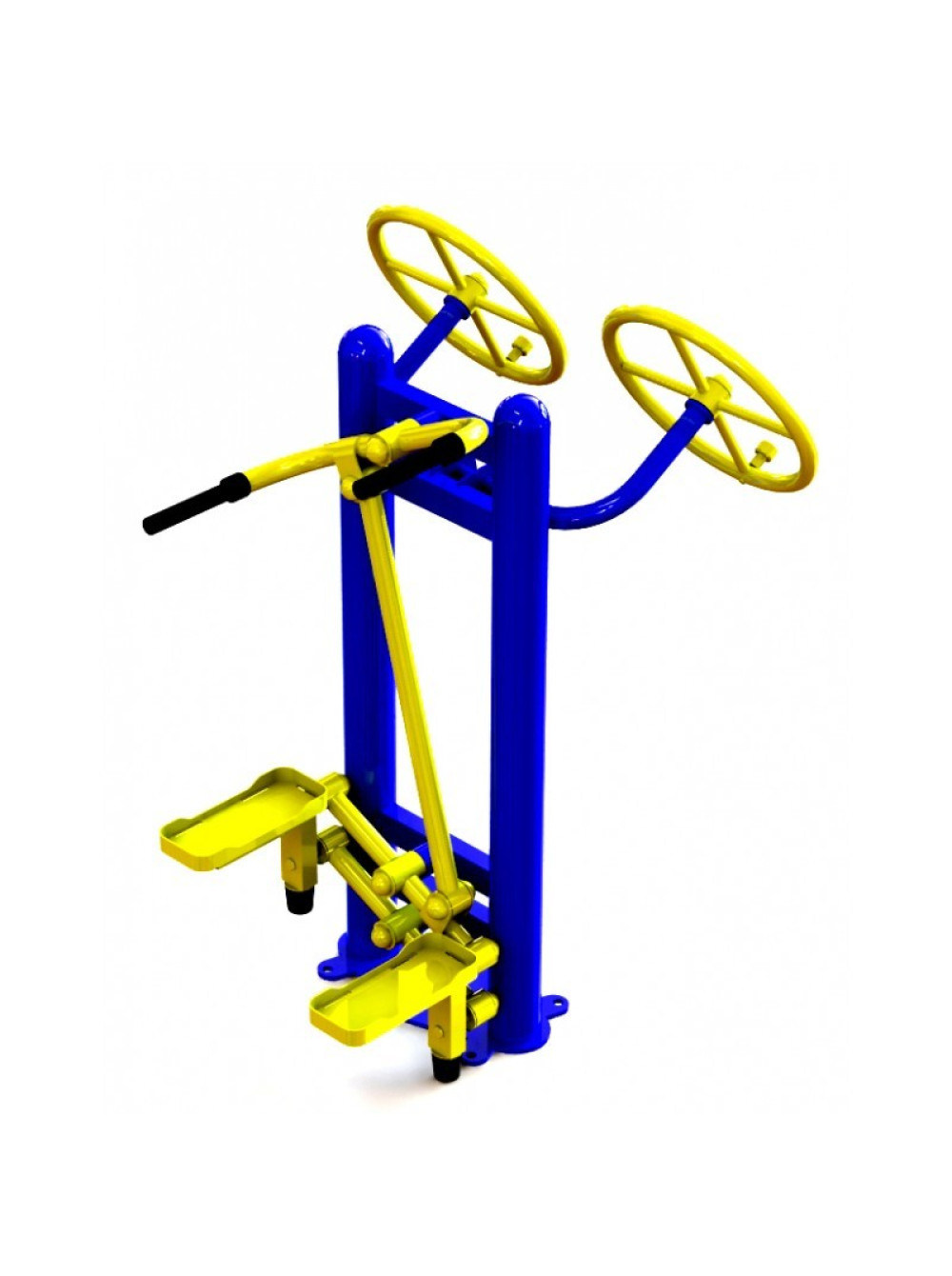 Вуличний тренажер для м'язів плечового пояса - степпер - це комбінований тренажер, призначений для занять спортом 2-х чоловік. Тренажер складається з двох частин: степпера - крокового кардіотренажера, і елемента для м'язів плечового пояса допомогою обертання руками. На цьому тренажері ви пропрацюєте м'язи сідниць, гомілок, стегна, а також верхнього плечового пояса.
