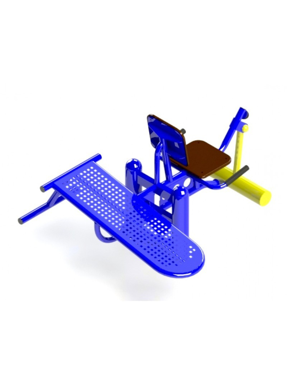 Вуличний тренажер "Розгинач стегна - для м'язів черевного преса" є комбінованим спортивним обладнанням, яке призначене для 2-х людей. Цей тренажер являє собою такі елементи як: розгинач стегна і тренажер для м'язів черевного преса. Вправи на цьому тренажері дозволять опрацювати м'язи передньої частини стегна, а також м'язи преса.