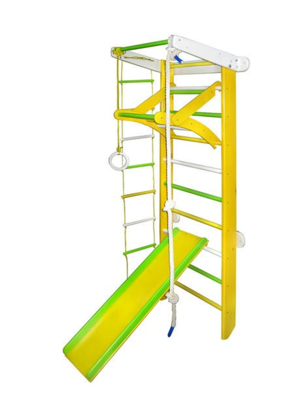 Спортивний куточок Канарка з дитячим турніком+гірка, виконаний в переважно яскравих жовтих тонах, колір, який символізує спритність, кмітливість і радість життя. Жовтий колір видно з усіх боків, він самий гнучкий, допомагає сконцентруватися і подолати труднощі.