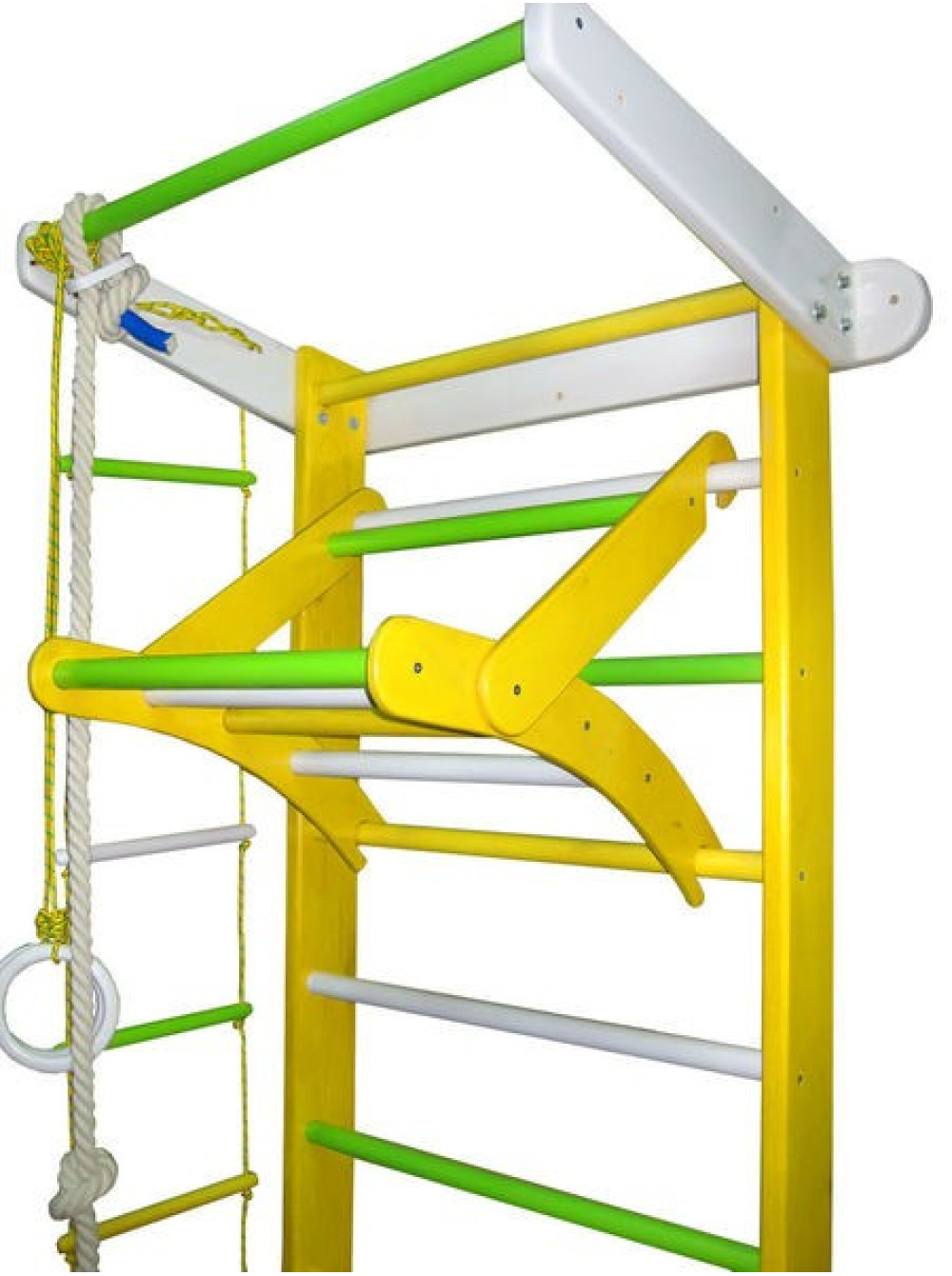 Заняття на такому спорткомплексі будуть проходити весело і невимушено. До того ж конструкція виконана з натуральної деревини сосни, яка допомагає збалансувати обмін вологи і тепла в будинку і насичує повітря киснем.