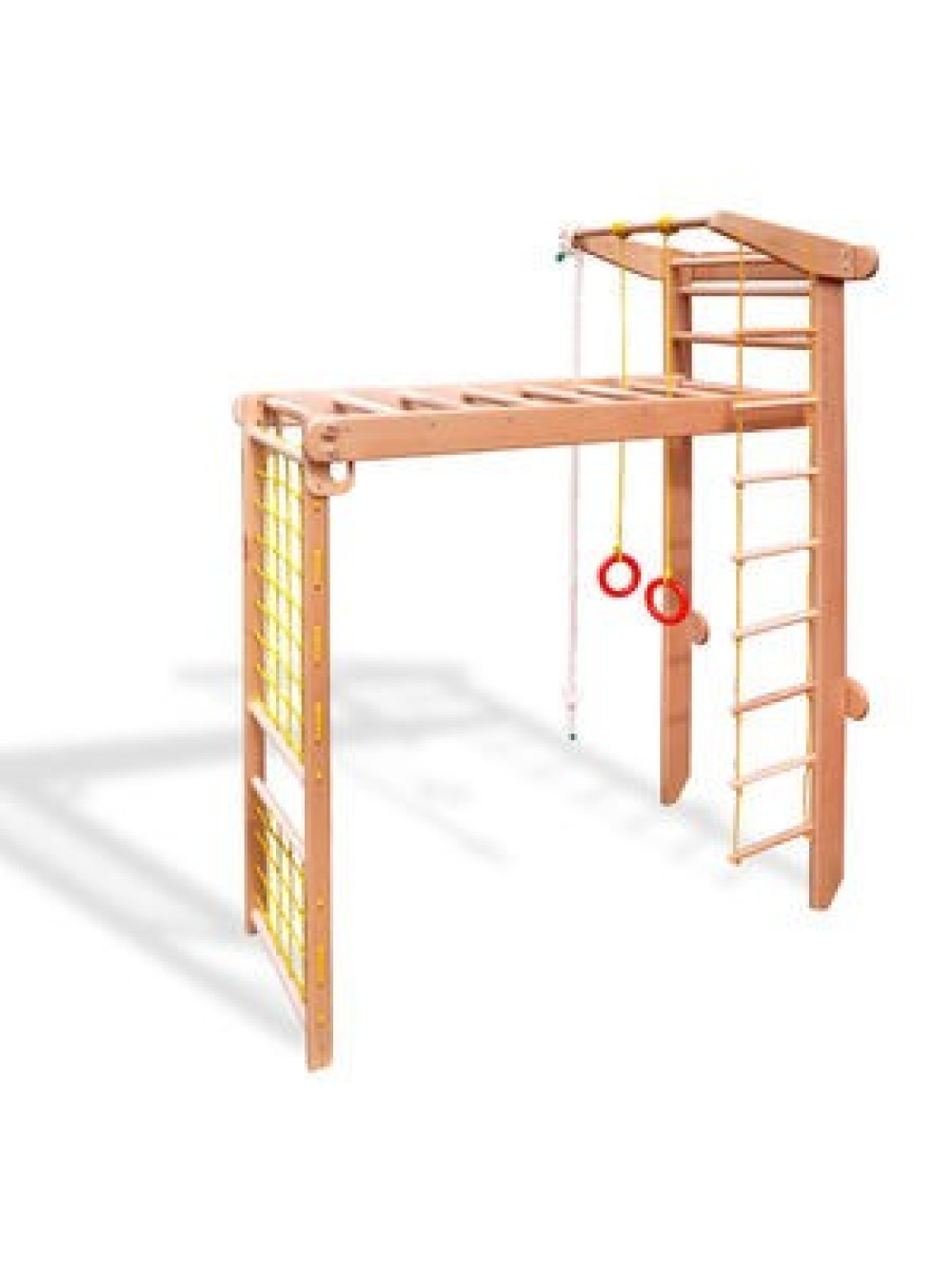 Спортивний куточок-трансформер бук виготовлений з буку, однієї з найтвердіших порід дерев, тому конструкція витримує навантаження до 100 кг, легко складається і розкладається, підійде навіть для малогабаритних квартир.