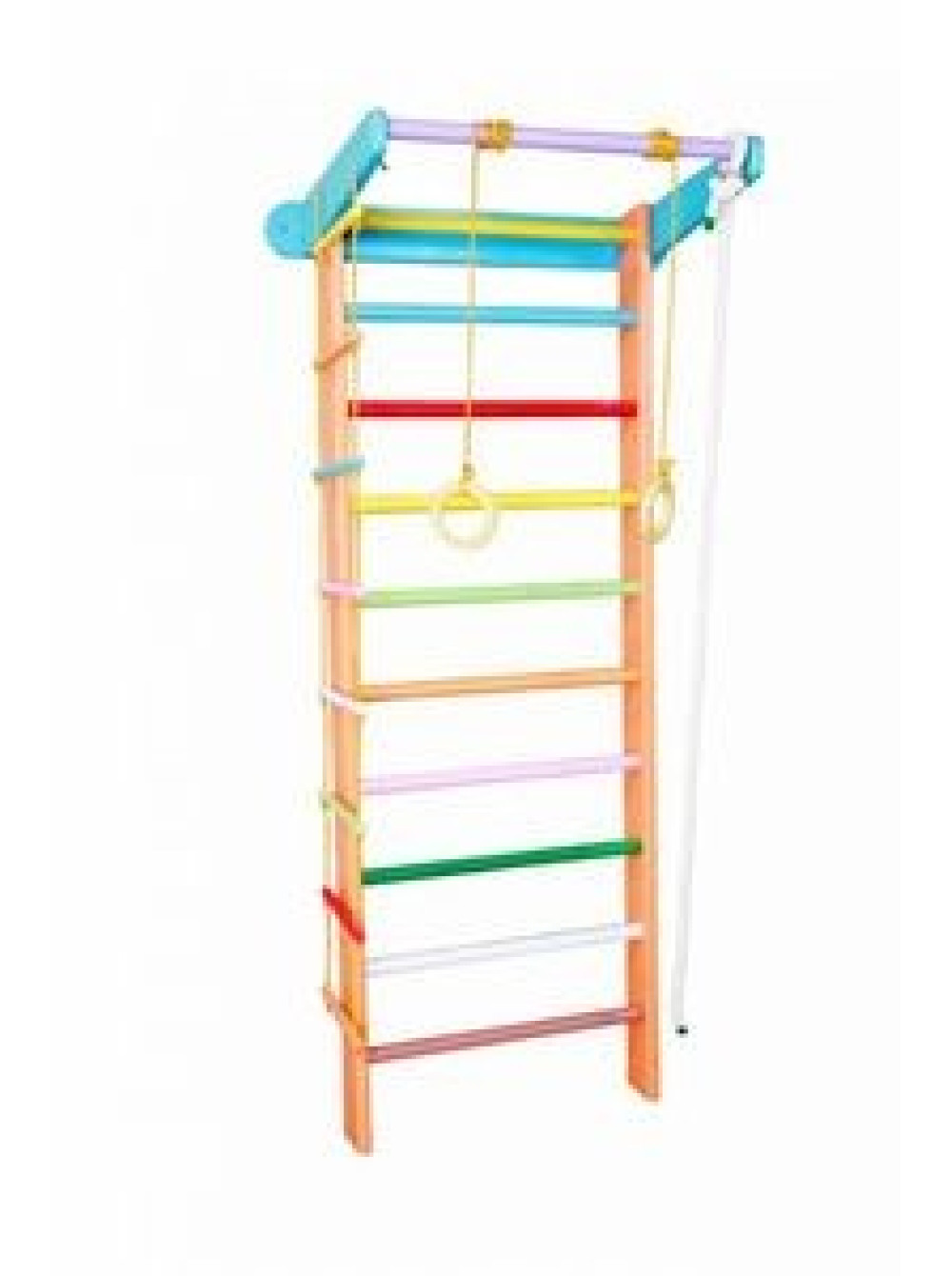 Спортивний куточок кольоровий з мотузковим набором Левеня пропонуємо вибрати й замовити з доставкою у десяти різних колірних варіантах, для хлопчиків і дівчаток, можна просто доповнити дизайн дитячої кімнати спортивними елементами за кольором і настроєм.