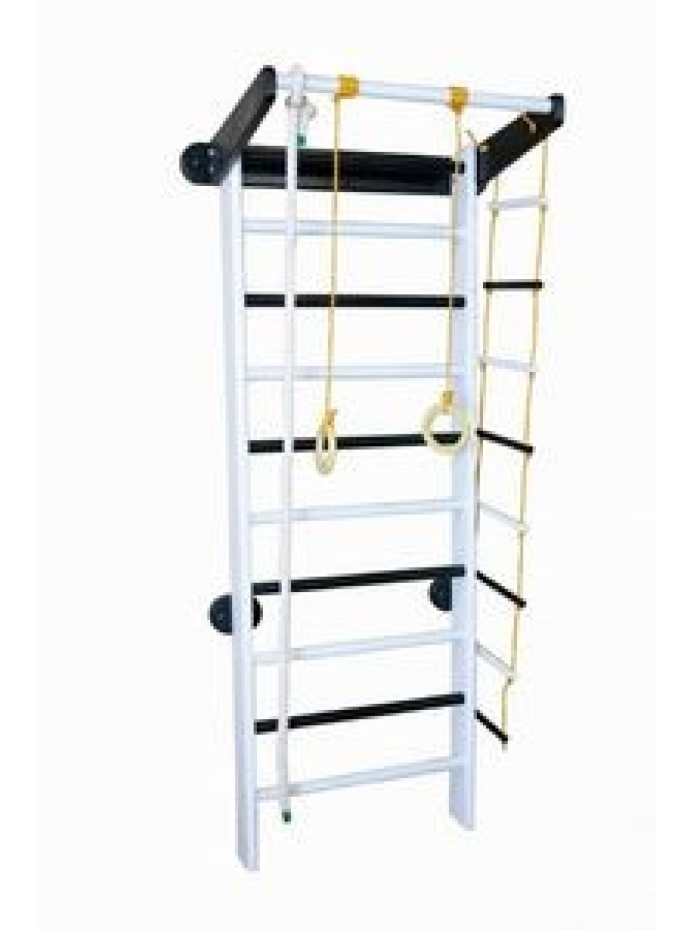 Спортивний комплекс доповнений мотузковим набором, кріпитися до стіни і підлоги стаціонарно.