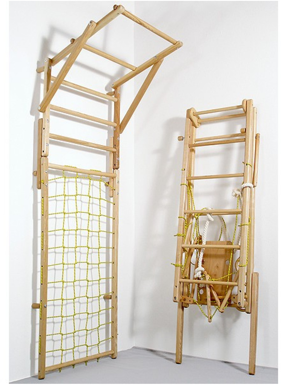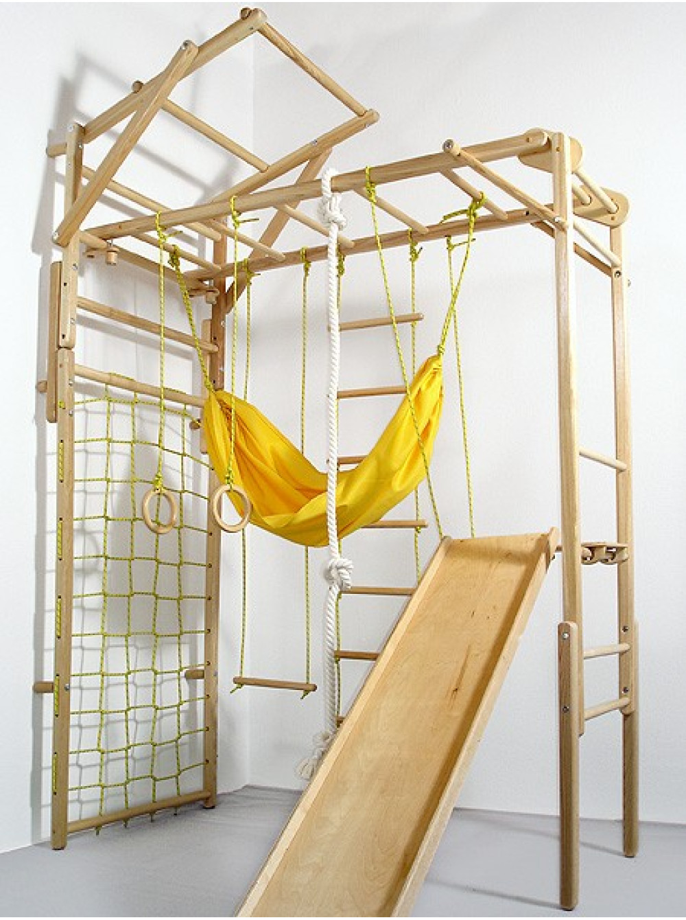 Спорткомплекс з рукоходом і сіткою Бук являє собою сітку, турнік, рукохід з мотузковим комплектом, гірку і гамак. Спорткомплекс з рукоходом і сіткою Бук зроблений з високоякісного масиву дерева. Цей комплект стане чудовим подарунком для вашого малюка до дня народження або будь-якої іншої дати.