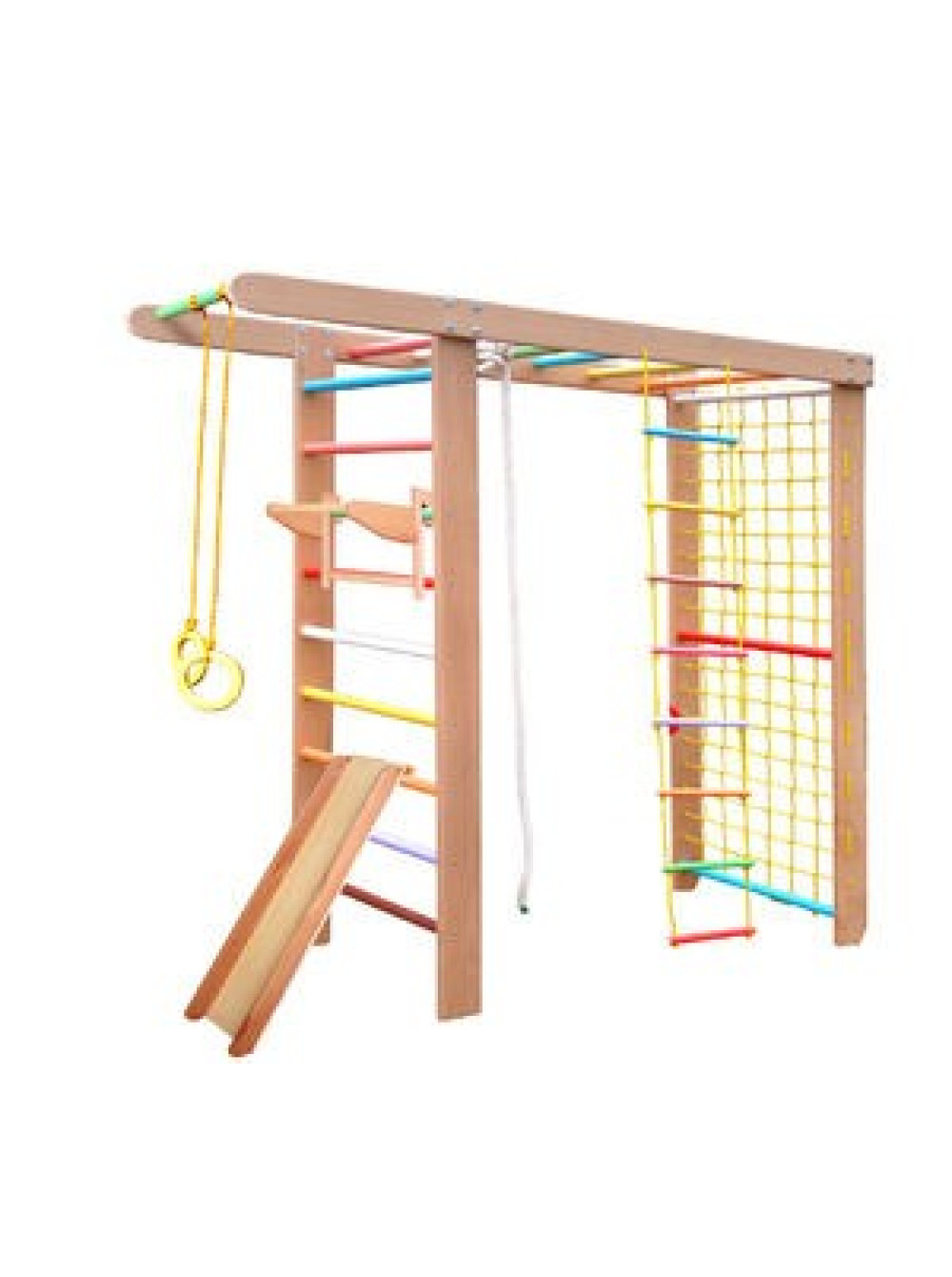 Цей комплекс більшою мірою розрахований на дітей віком від чотирьох років, доповнений усіма потрібними аксесуарами для спортивних тренувань, а найменших дуже порадує наявність дитячої гірки. На спорткомплексі одночасно можуть грати кілька дітей. Саме час запросити маленьких гостей для ігор і веселощів.