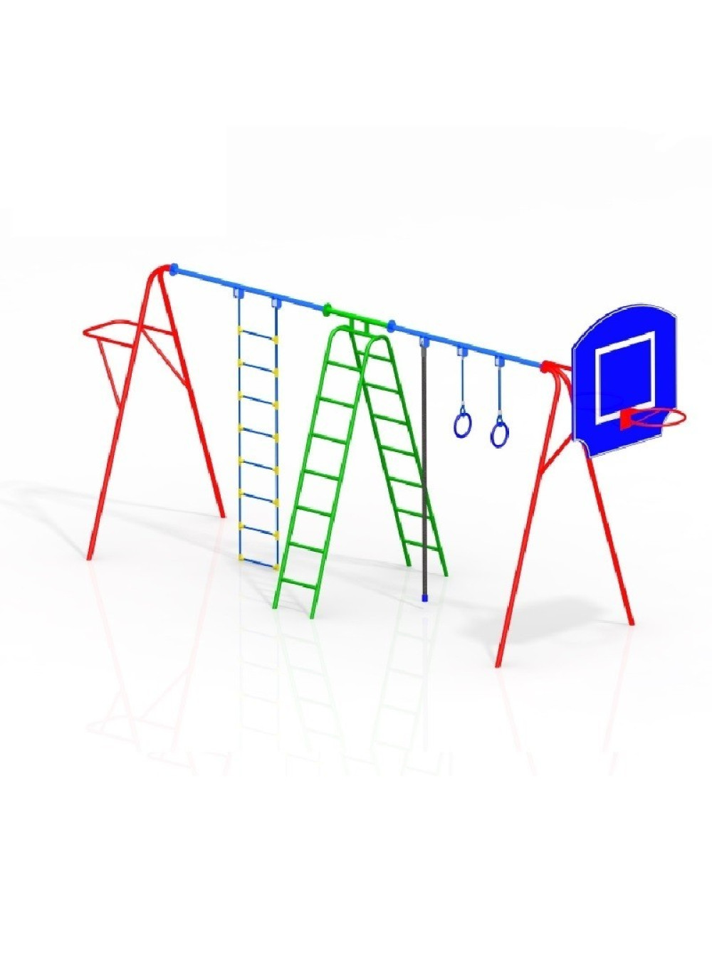Спортивний комплекс для вулиці Мауглі - з невеликими габаритами і заввишки у два метри, зроблений спеціально для дітей дошкільного та молодшого шкільного віку, що б їм було зручно, комфортно, не страшно і в той же час захоплюючи підійматися на нього. Драбинки для підйомів і спусків, гімнастичні кільця, турнік і волейбольне кільце - тут є все для активних ігор та дозвілля дітлахів.