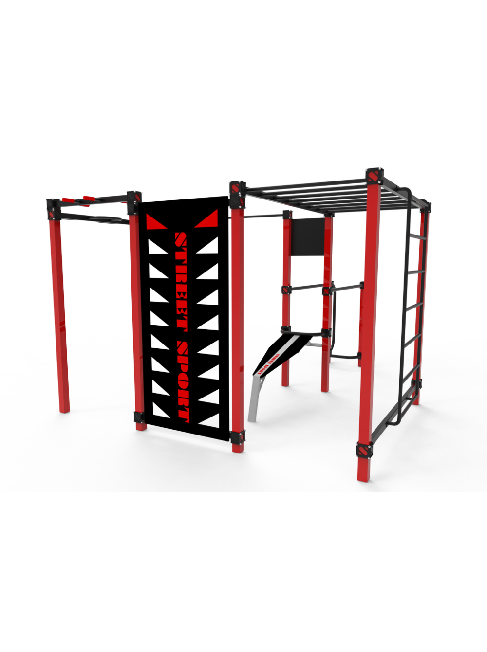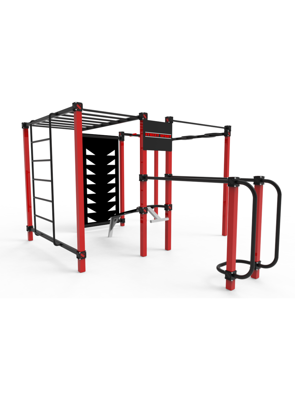 Воркаут для спортивного майданчика S-20 - ідеальна конструкція з необхідним набором спортивних і гімнастичних елементів. Також комплекс доповнений вельми популярним останнім часом тренажером - лавою для преса.
