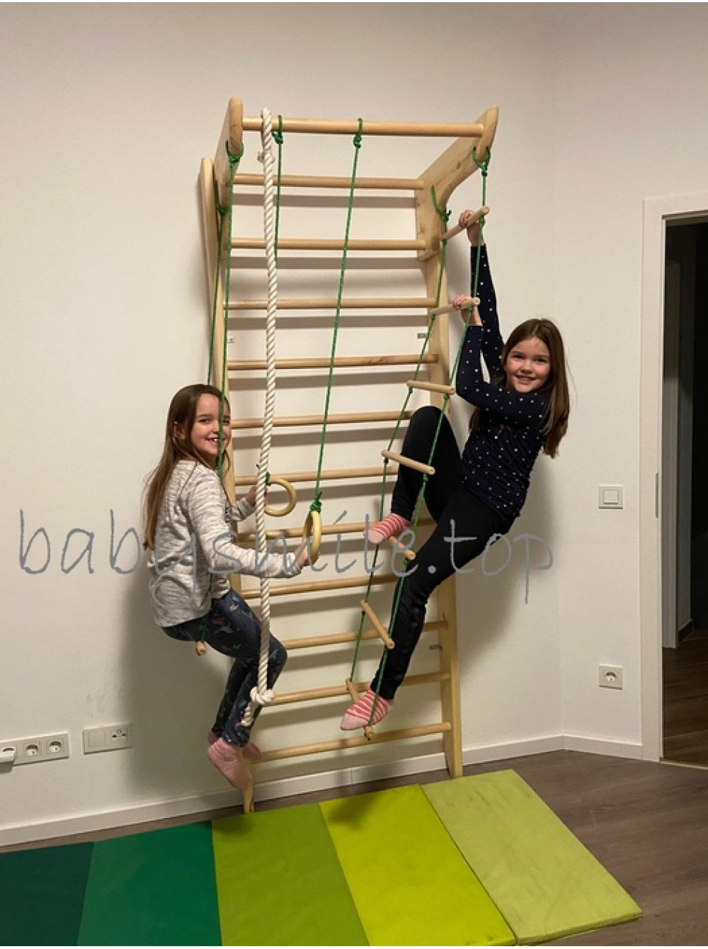 Шведська стінка з турніком і мотузковим набором - базовий, Класичний, не дорогий, надійний, перевірений часом варіант міні-спортивного куточка для дітей в квартирі. На ньому можуть займатися діти і дорослі.