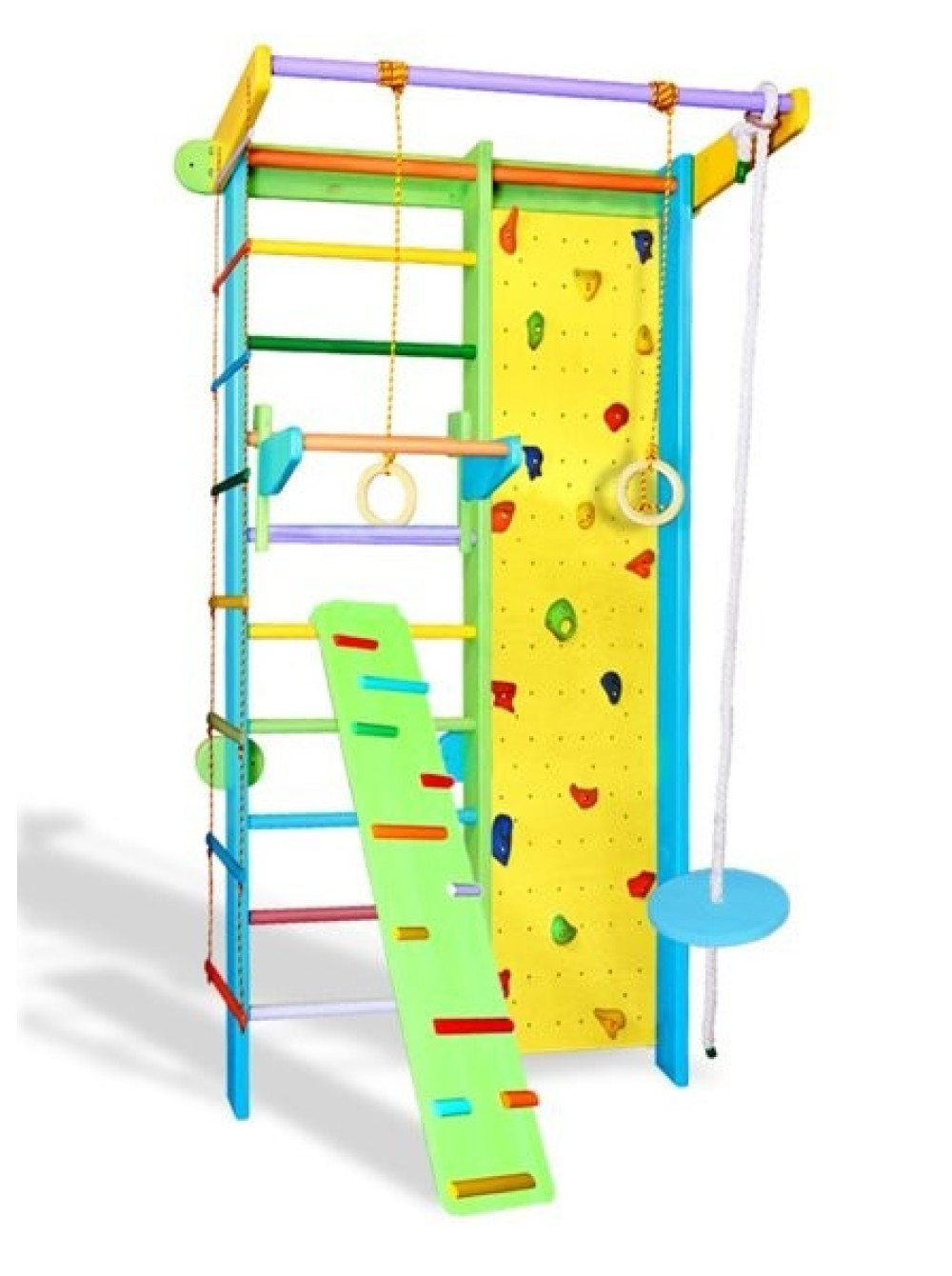 Спорткомплекс Комби із скалодромом кольоровий ПК-1 - в повній комплектації з дитячим турніком і дошкою ребристої один з найпопулярніших спортивних куточків у наших покупців. І це не дивно, адже це не лише модний і відносно "молодий" спортивний елемент, але і міні-формат визнаного у всьому світі виду спорту - скелелазіння.