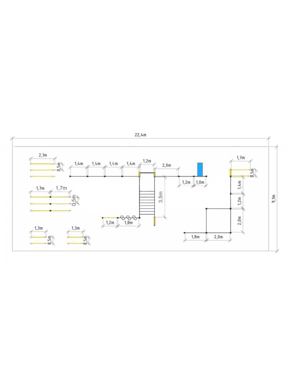 Спортивний майданчик для школи Workout №10 - спортивний комплекс для ефективних тренувань зі своєю вагою, підійде для тих, хто хоче виконувати прості гімнастичні вправи для підтримки свого тіла в хорошій фізичній формі, також для тих, хто ставить перед собою серйозніші і складніші завдання.