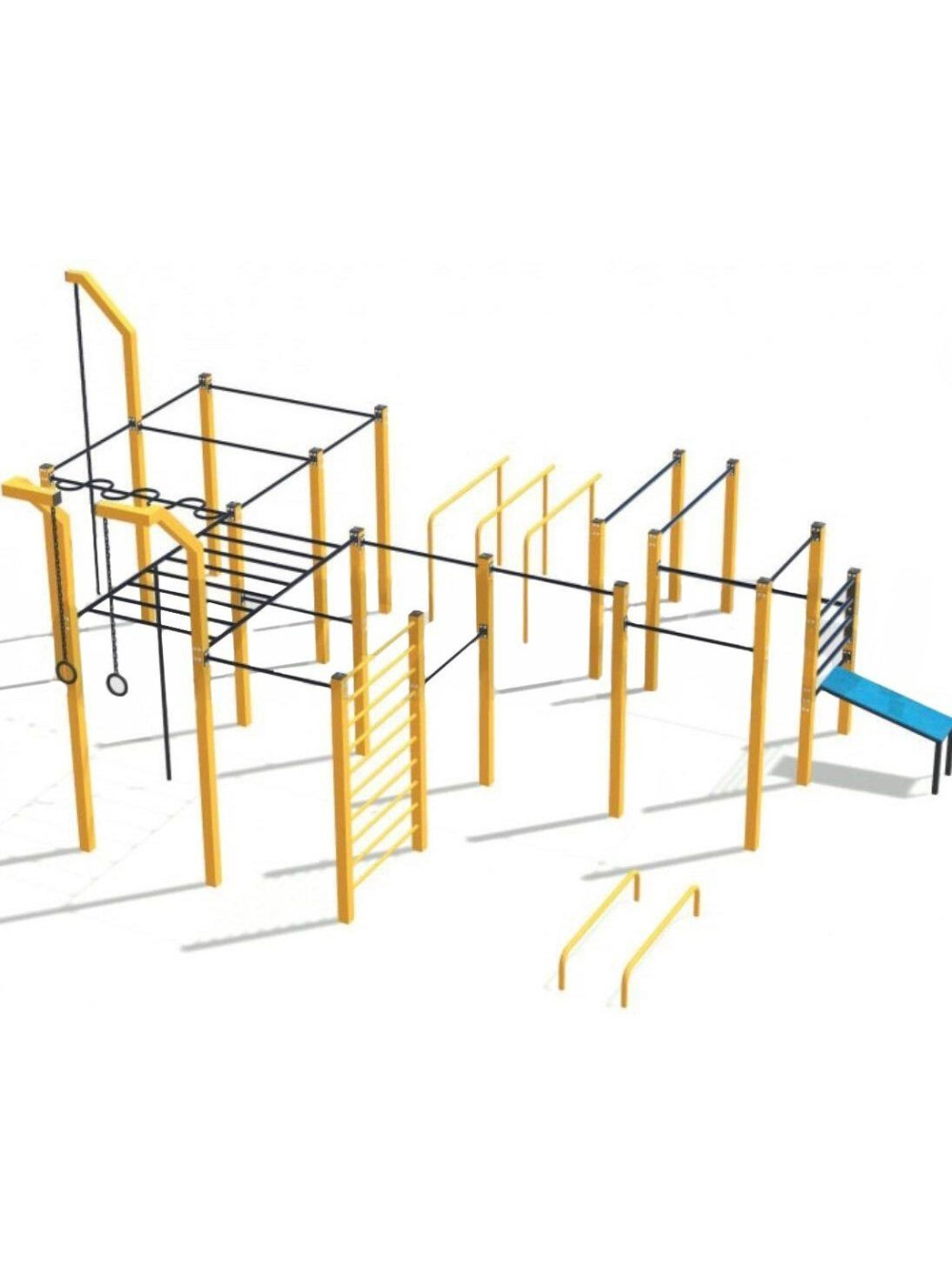 Спортивная площадка для школы Workout - спортивний комплекс для ефективних тренувань зі своєю вагою, підійде для тих, хто хоче виконувати прості гімнастичні вправи для підтримки свого тіла в хорошій фізичній формі, також для тих, хто ставить перед собою серйозніші і складніші завдання.