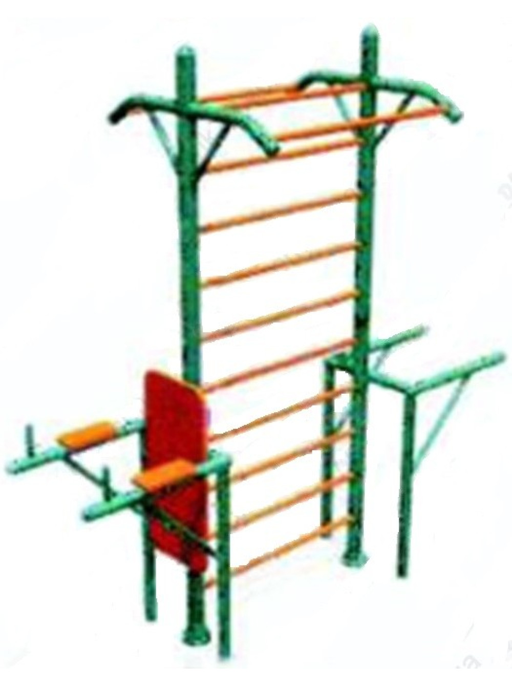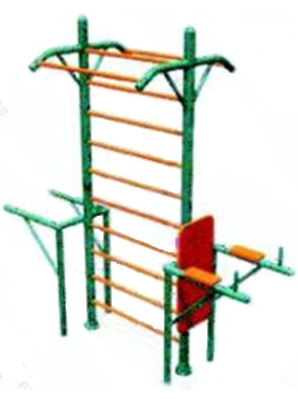 Комплекс виконаний з металевих труб і пофарбований порошковими фарбами європейського виробництва, що робить його стійким до впливу навколишнього середовища і різних погодних умов