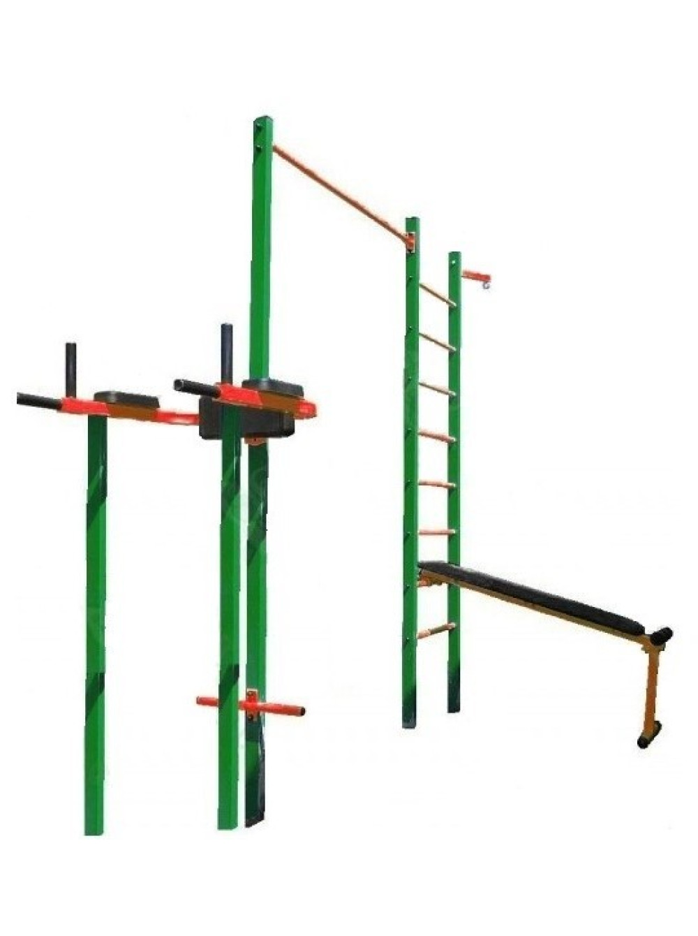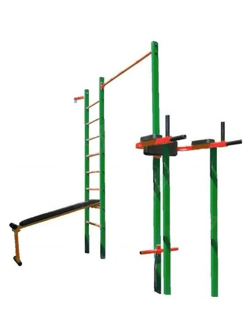 Комплекс виконаний з металевого профілю та труб і пофарбований порошковими фарбами європейського виробництва, що робить його стійким до впливу навколишнього середовища і різних погодних умов.