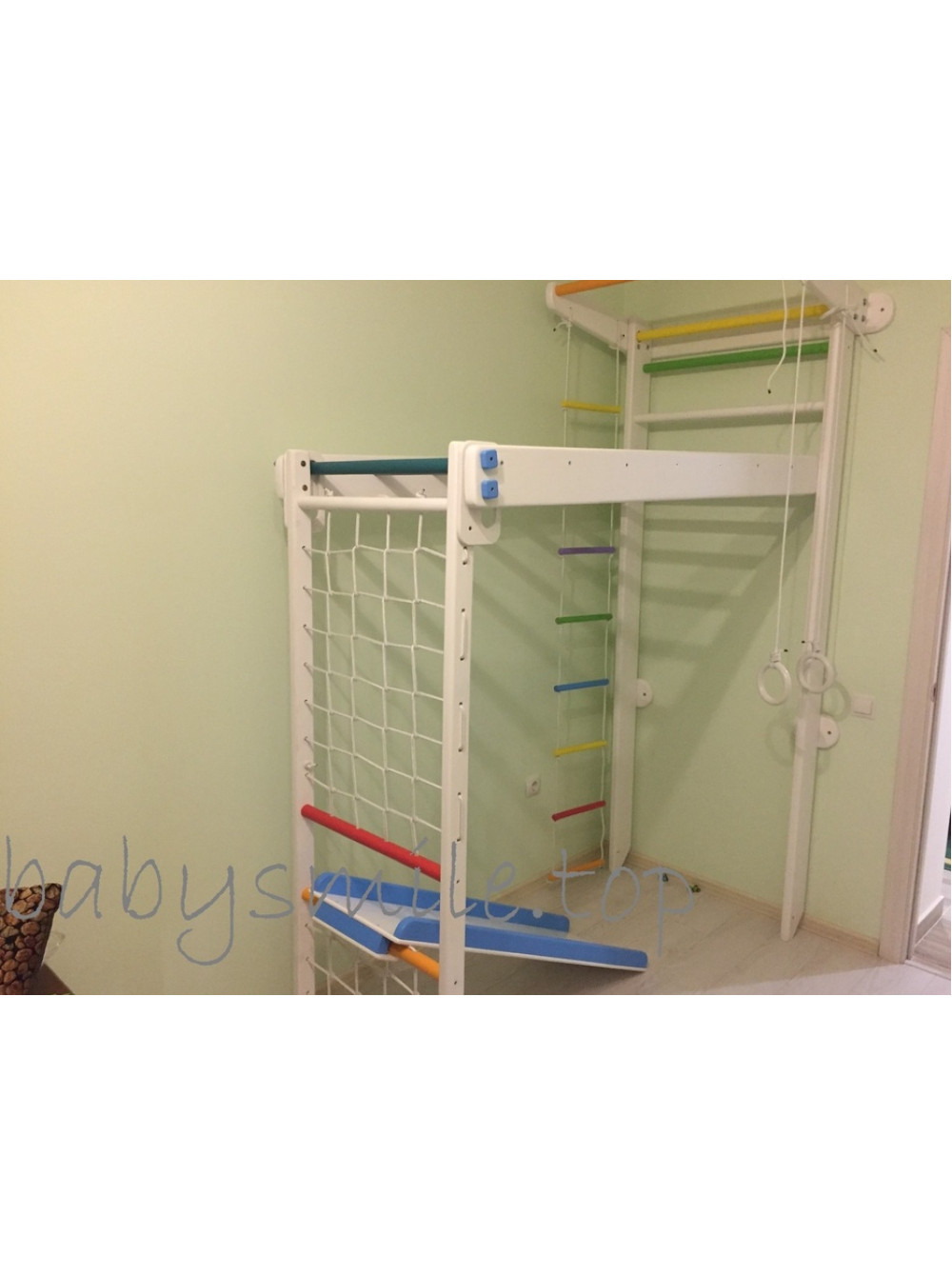 Проте, окрім красивого зовнішнього вигляду цей куточок здоров'я має ряд цілком об'єктивних особливостей. Його можна скласти і розкласти на вимогу дитини у будь-який потрібний для Вас час і це займе всього декілька хвилин. Таким чином, подібна конструкція постійно не захаращуватиме дитячу кімнату і завжди можна звільнити місце для іншого зайняття і ігор.