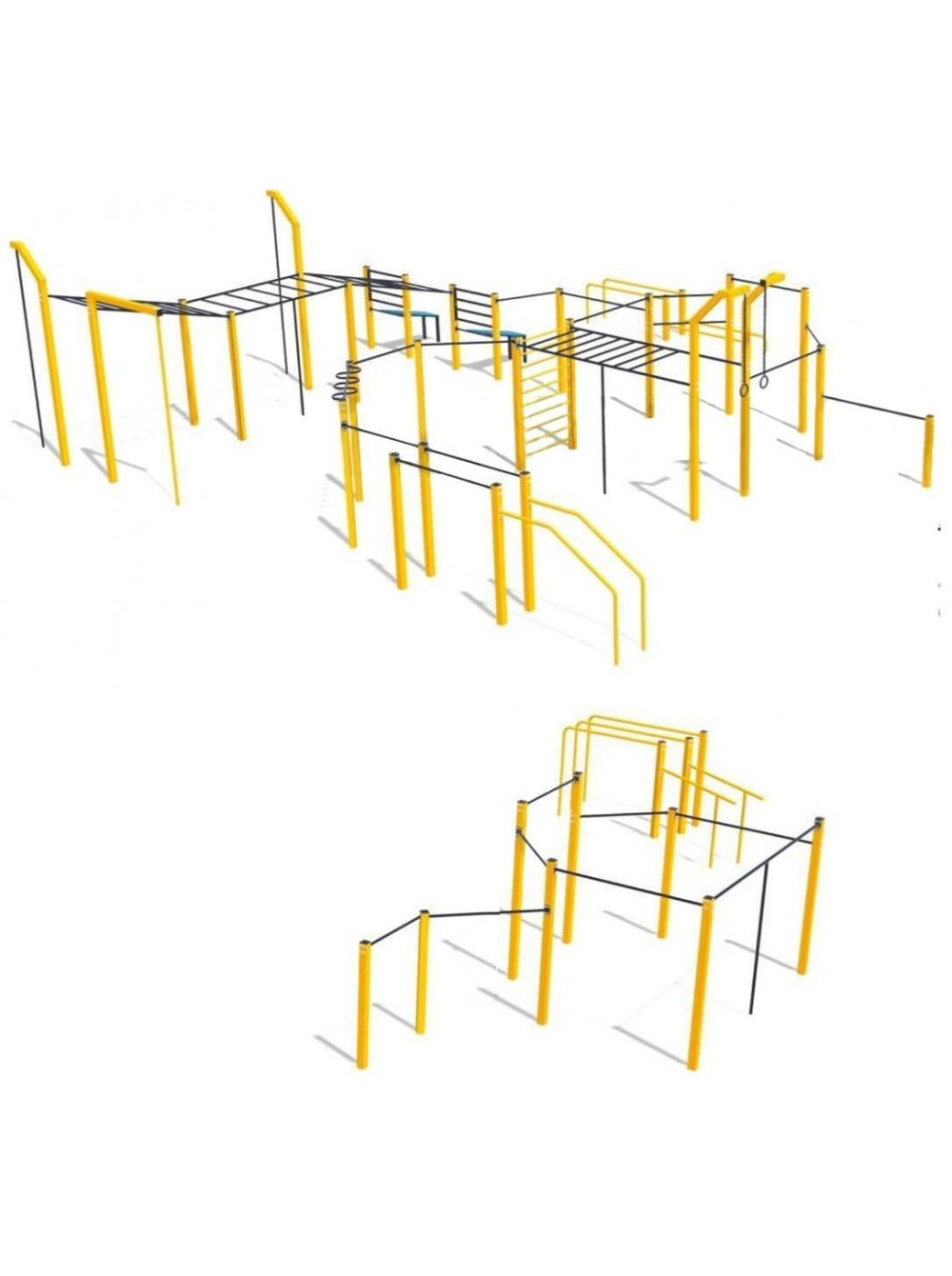 Тут Ви знайдете усі необхідні спортивні елементи, бруси і турніки, встановлені на різній висоті, для виконання серії вправ на силу, рівновагу і гнучкість.